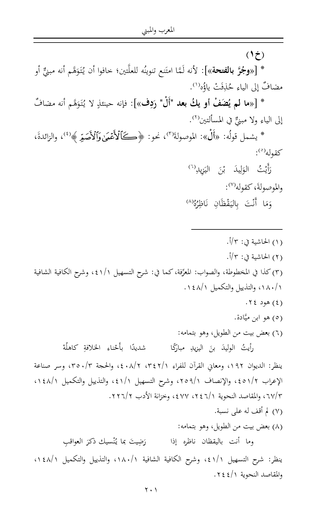 ينظر: شرح التسهيل ١/ ٤١، وشرح الكافية الشافية ١/ ١٨٠، والتذييل والتكميل ١/ ١٤٨، والمقاصد النحوية ١/ ٢٤٤.