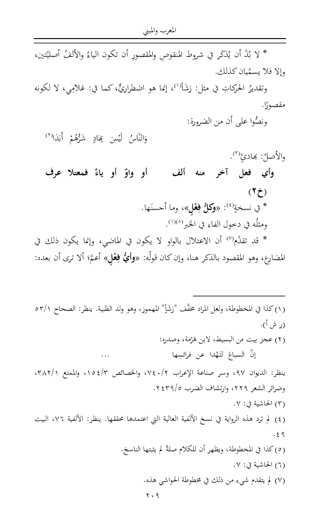 (¬٤) لم ترد هذه الرواية في نسخ الألفية العالية التي اعتمدها محققها. ينظر: الألفية ٧٦، البيت ٤٩.