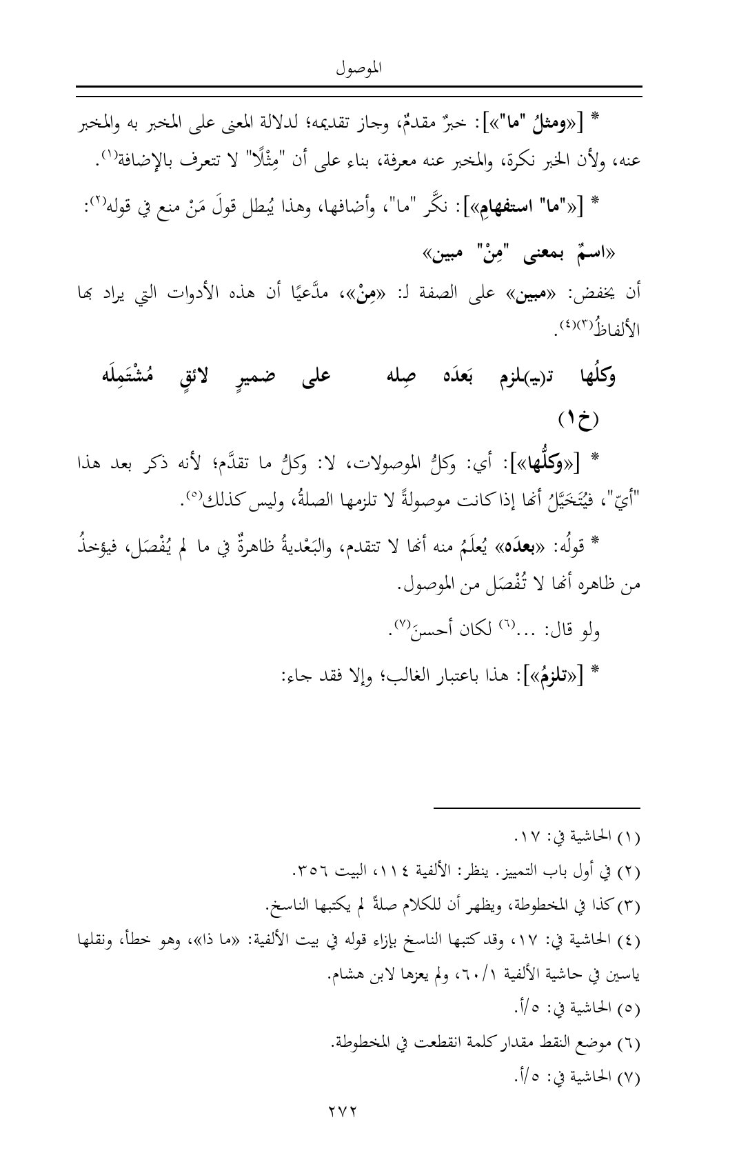 * [«وكلُّها»]: أي: وكلُّ الموصولات، لا: وكلُّ ما تقدَّم؛ لأنه ذكر بعد هذا "أيّ"، فيُتَخَيَّلُ أنها إذا كانت موصولةً لا تلزمها الصلةُ، وليس كذلك (¬٥).