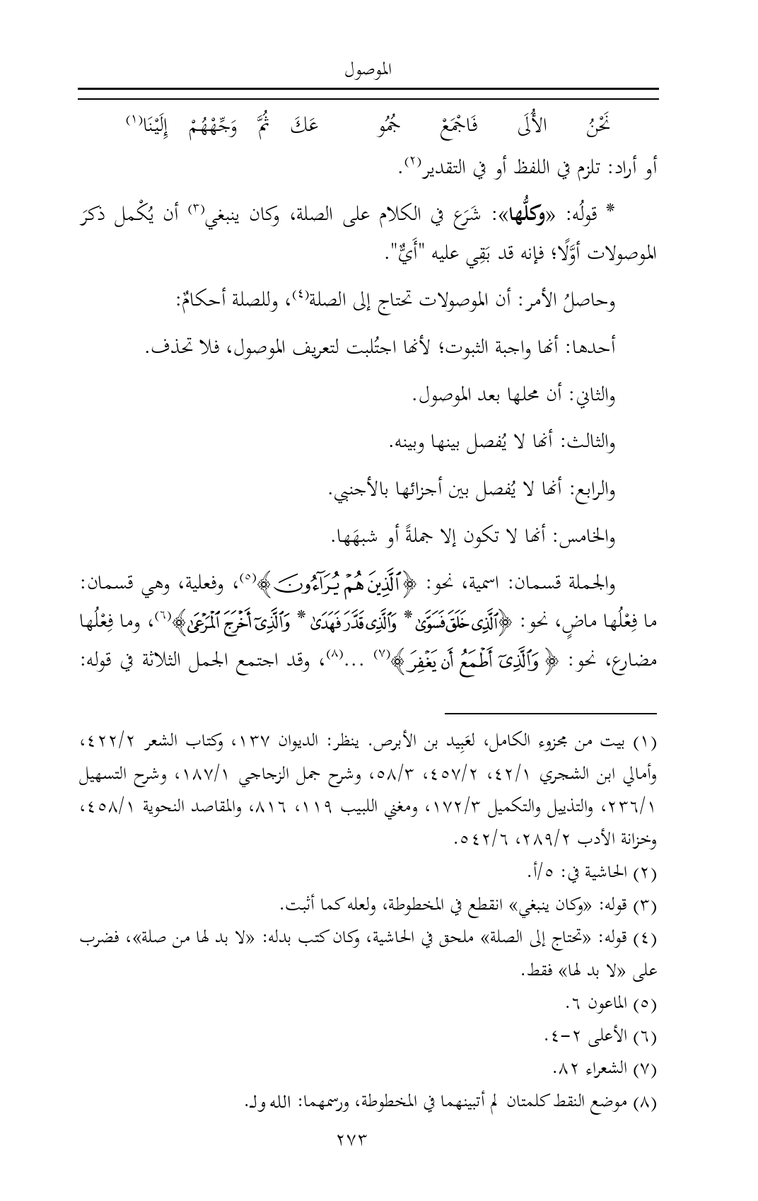 (¬٤) قوله: «تحتاج إلى الصلة» ملحق في الحاشية، وكان كتب بدله: «لا بد لها من صلة»، فضرب على «لا بد لها» فقط.