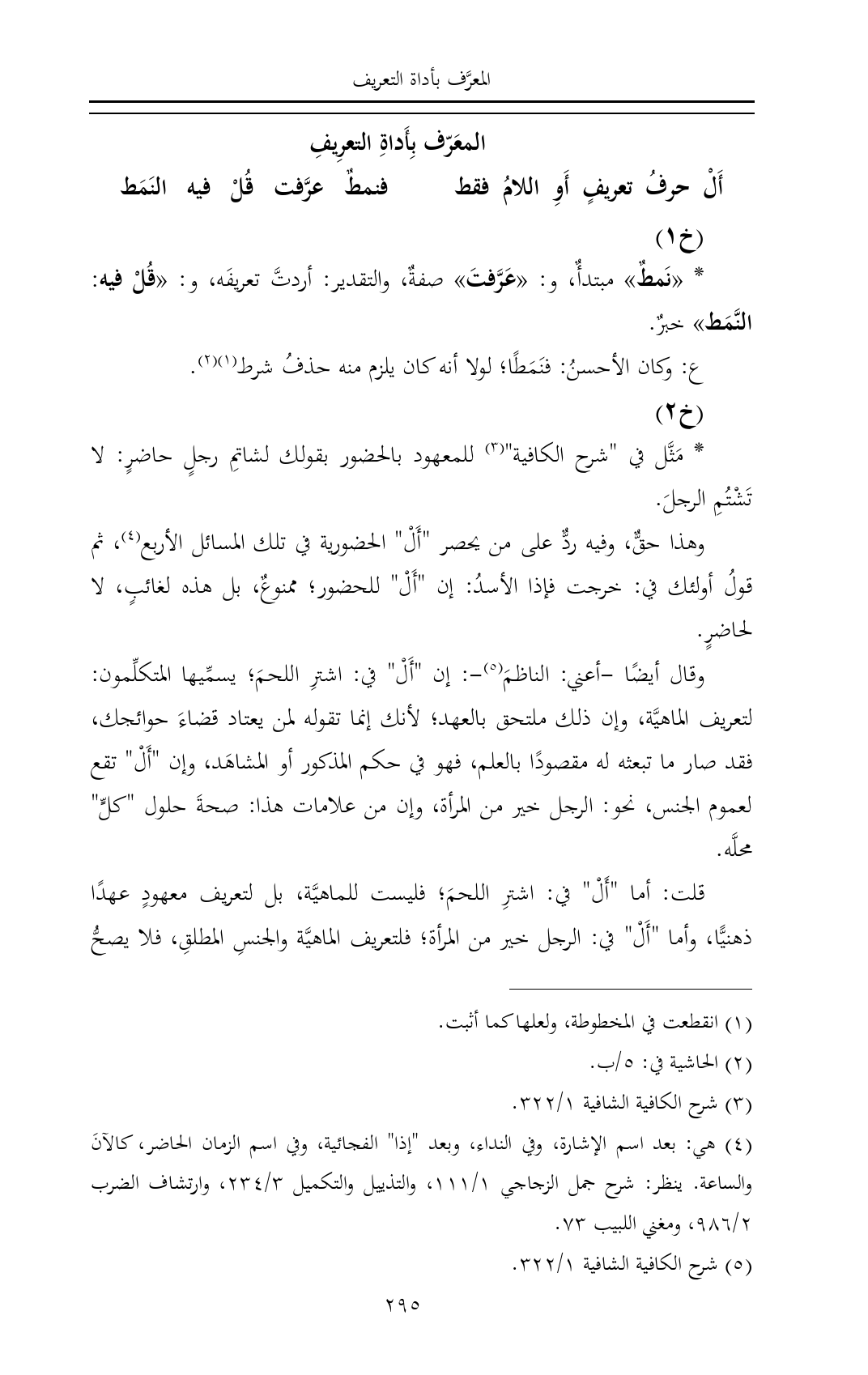 (¬٥) شرح الكافية الشافية ١/ ٣٢٢.
