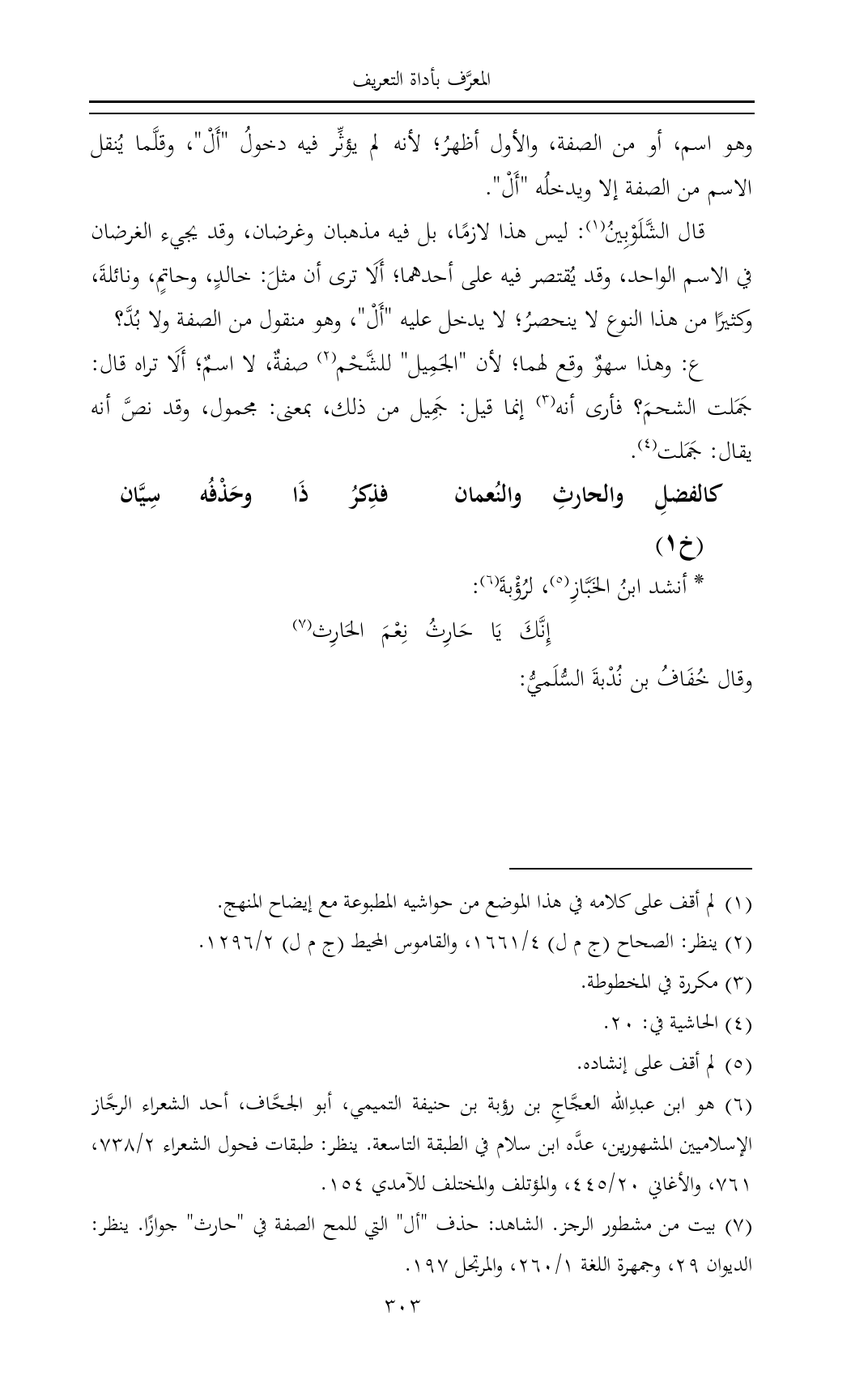(¬١) لم أقف على كلامه في هذا الموضع من حواشيه المطبوعة مع إيضاح المنهج.