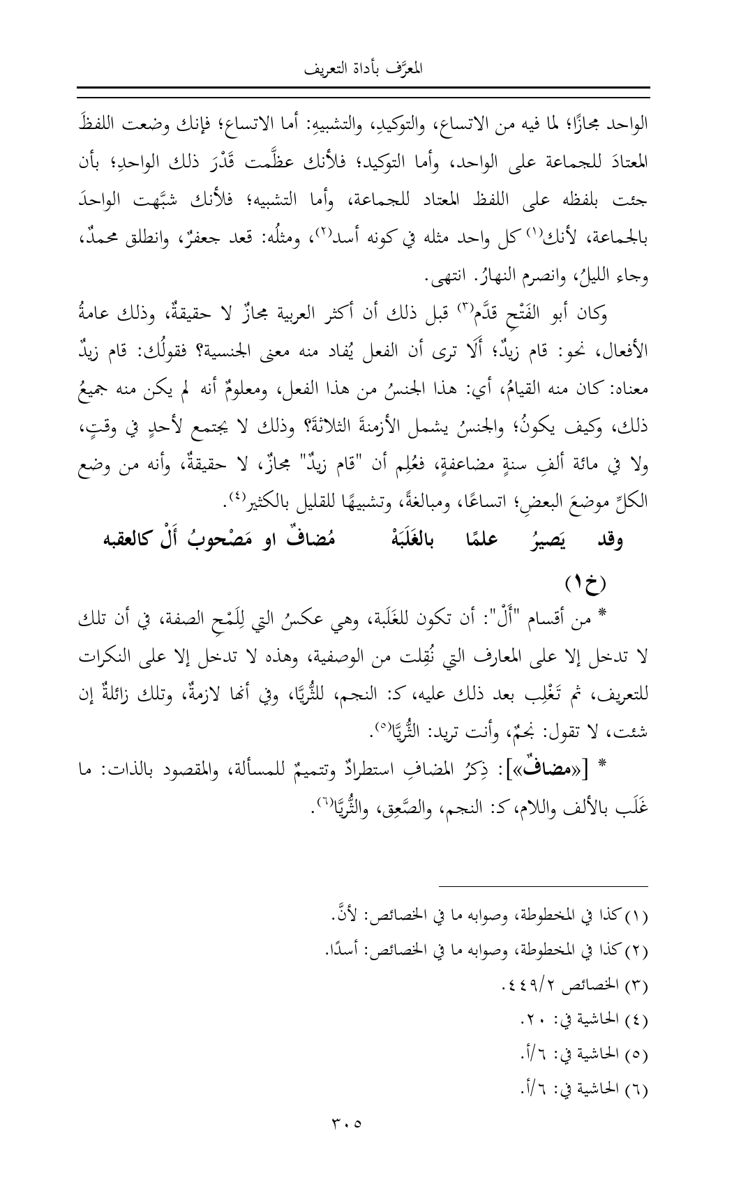 (¬١) كذا في المخطوطة، وصوابه ما في الخصائص: لأنَّ.
