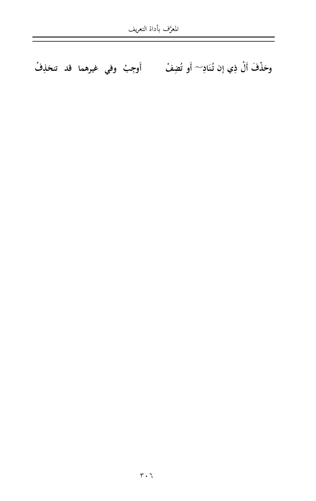 وحَذْفَ أَلْ ذِي إن تُنَادِ أَو تُضِفْ ... أَوجِبْ وفي غيرهما قد تنحَذِفْ