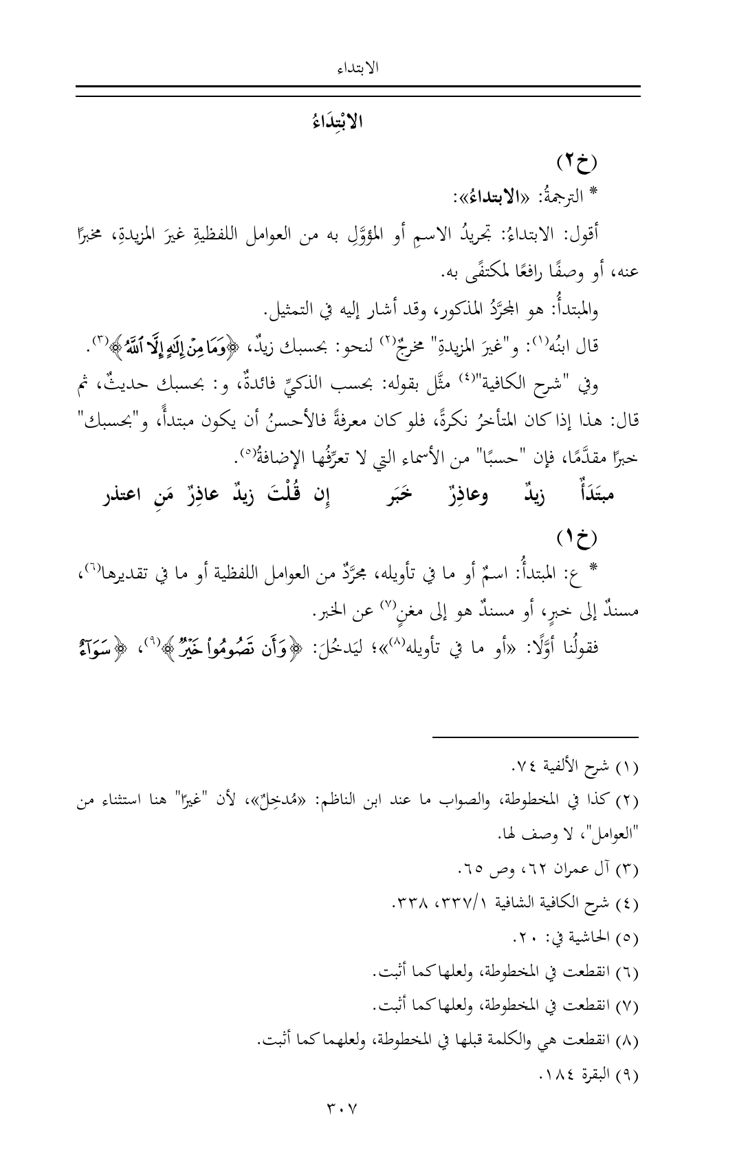 (¬٤) شرح الكافية الشافية ١/ ٣٣٧، ٣٣٨.