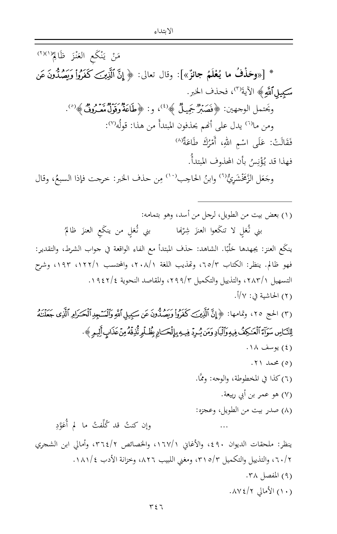 (¬٣) الحج ٢٥، وتمامها: {إِنَّ الَّذِينَ كَفَرُوا وَيَصُدُّونَ عَنْ سَبِيلِ اللَّهِ وَالْمَسْجِدِ الْحَرَامِ الَّذِي جَعَلْنَاهُ لِلنَّاسِ سَوَاءً الْعَاكِفُ فِيهِ وَالْبَادِ وَمَنْ يُرِدْ فِيهِ بِإِلْحَادٍ بِظُلْمٍ نُذِقْهُ مِنْ عَذَابٍ أَلِيمٍ}.