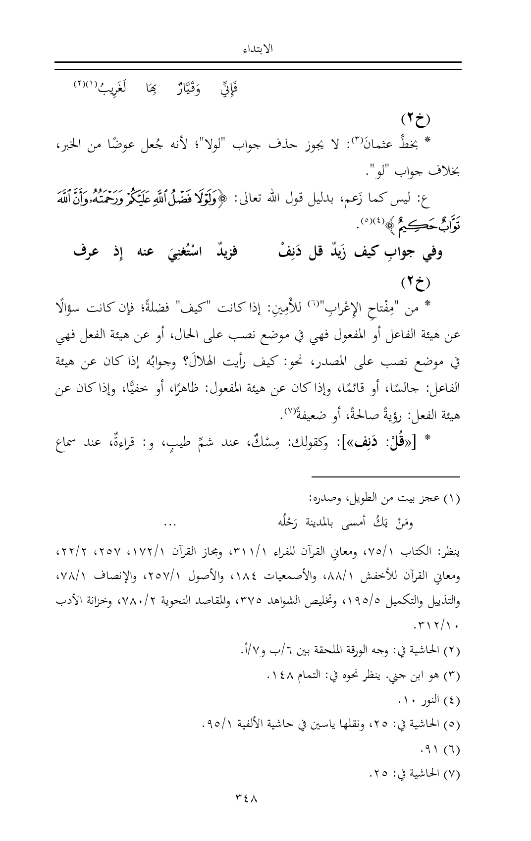 (¬٢) الحاشية في: وجه الورقة الملحقة بين ٦/ب و ٧/أ.