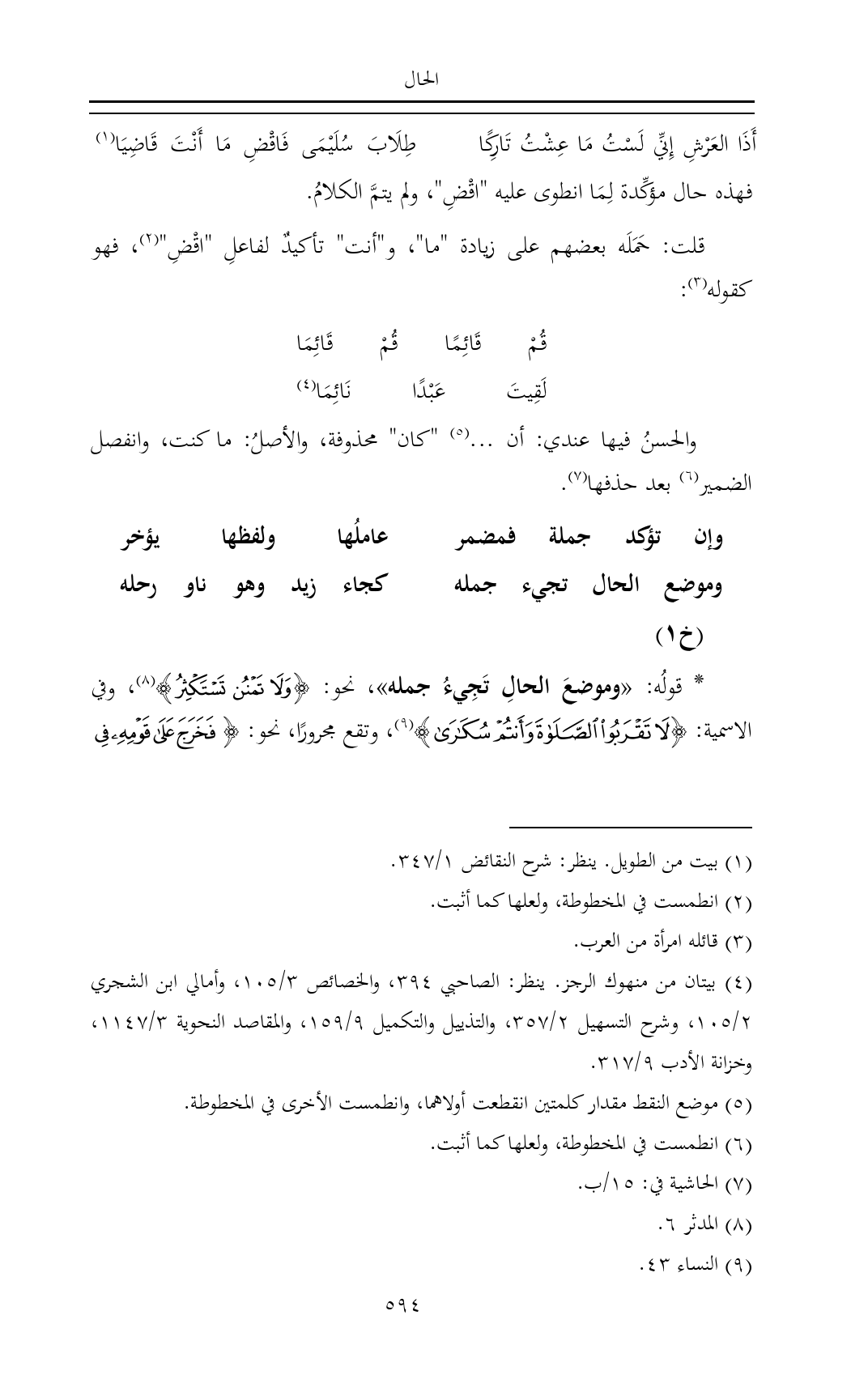 فهذه حال مؤكِّدة لِمَا انطوى عليه "اقْضِ"، ولم يتمَّ الكلامُ.