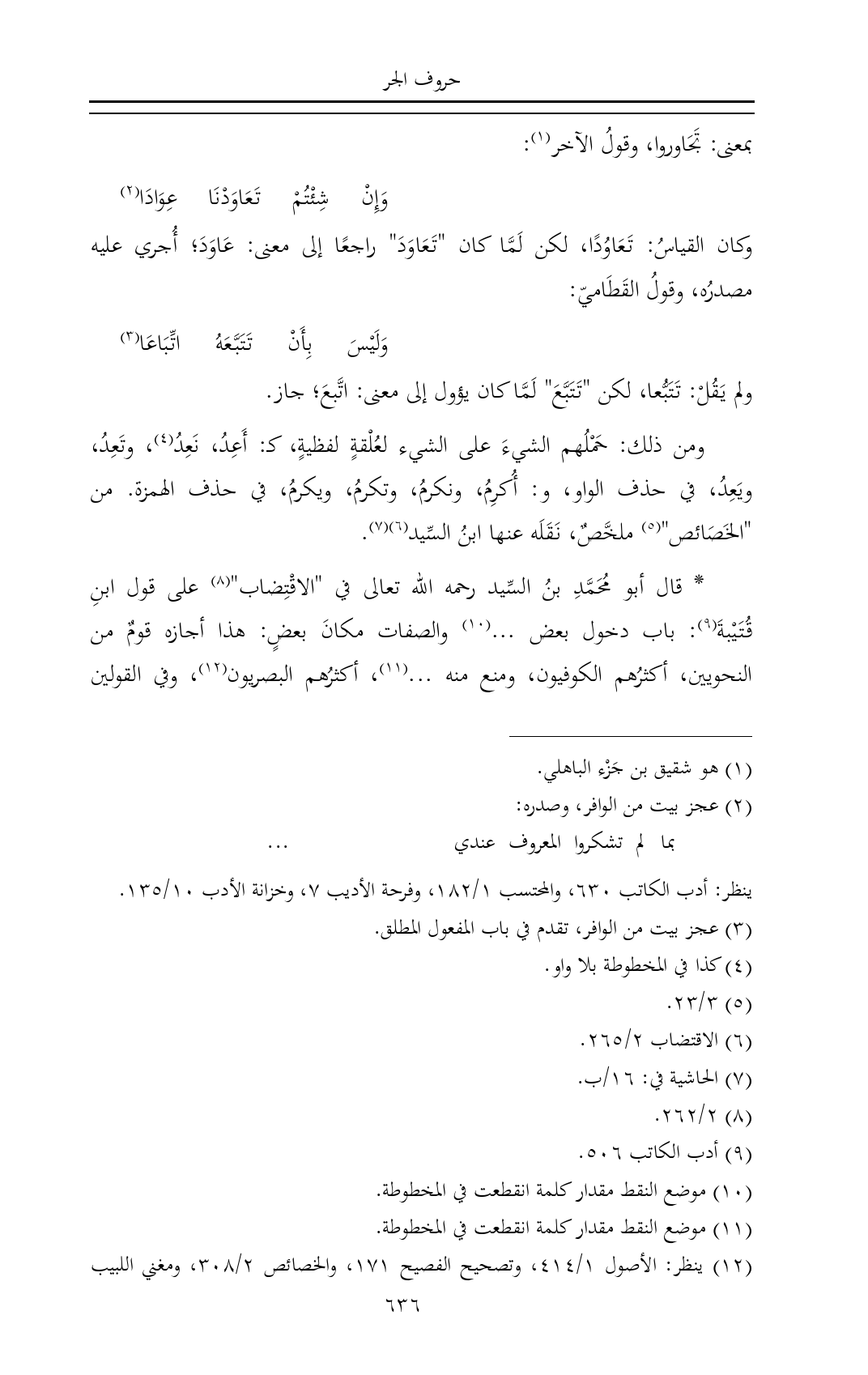 (¬١٢) ينظر: الأصول ١/ ٤١٤، وتصحيح الفصيح ١٧١، والخصائص ٢/ ٣٠٨، ومغني اللبيب ١٥٠، ٨٦١.