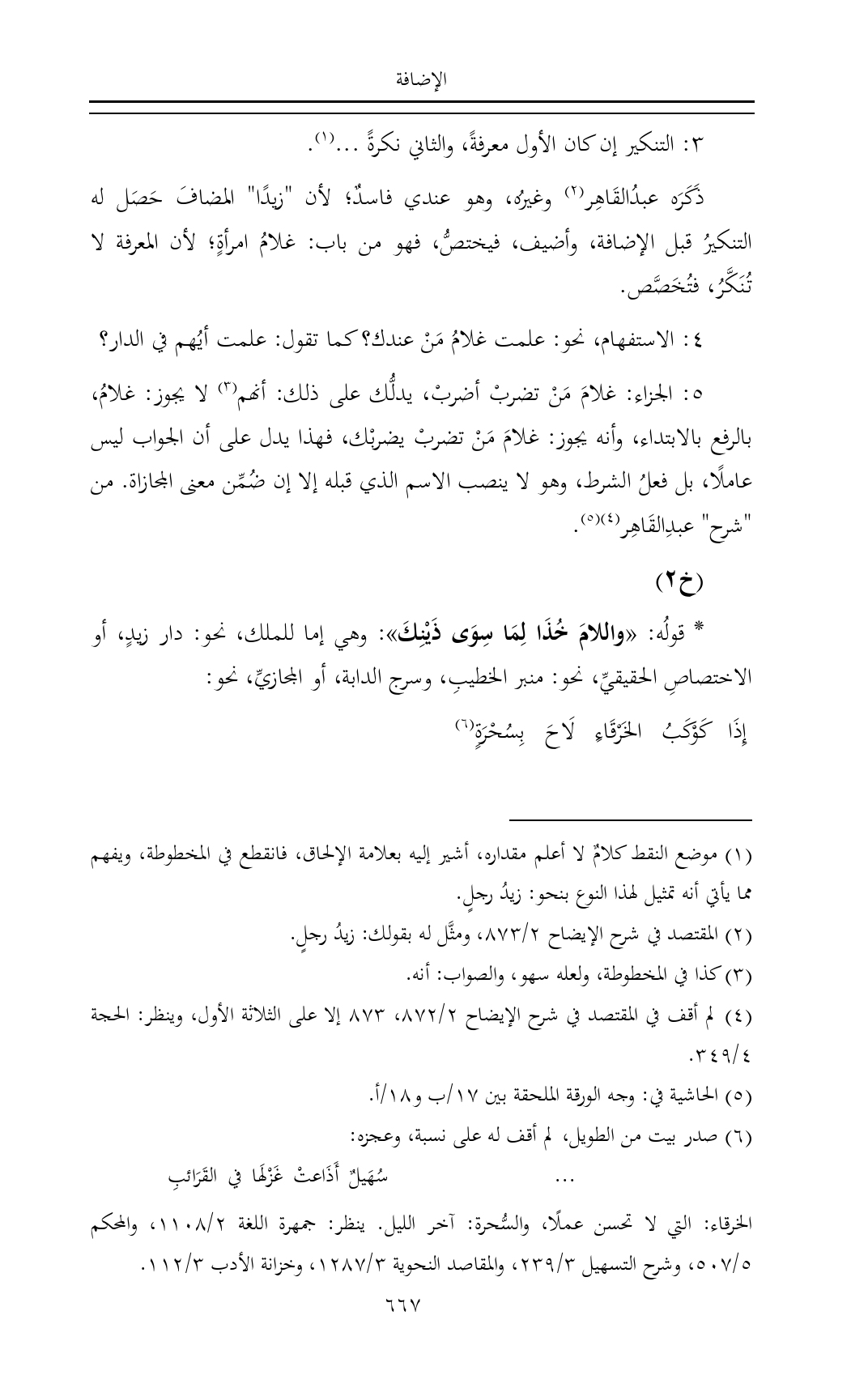 (¬٢) المقتصد في شرح الإيضاح ٢/ ٨٧٣، ومثَّل له بقولك: زيدُ رجلٍ.