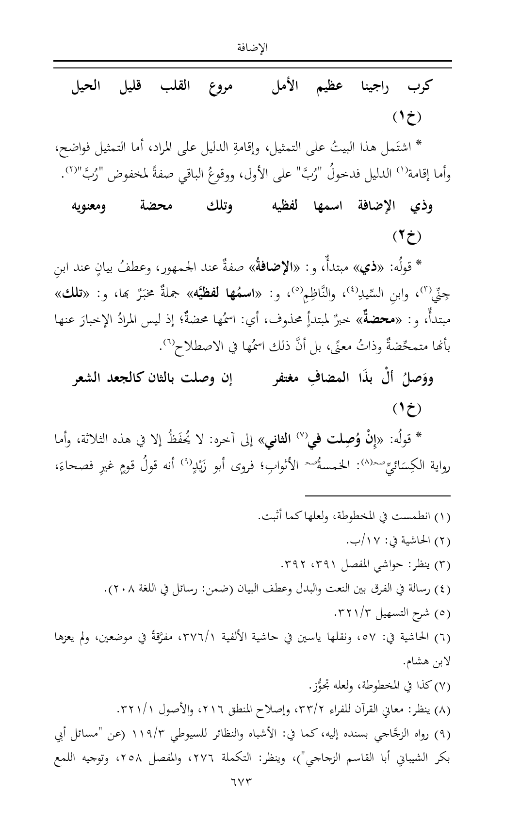 (¬٣) ينظر: حواشي المفصل ٣٩١، ٣٩٢.