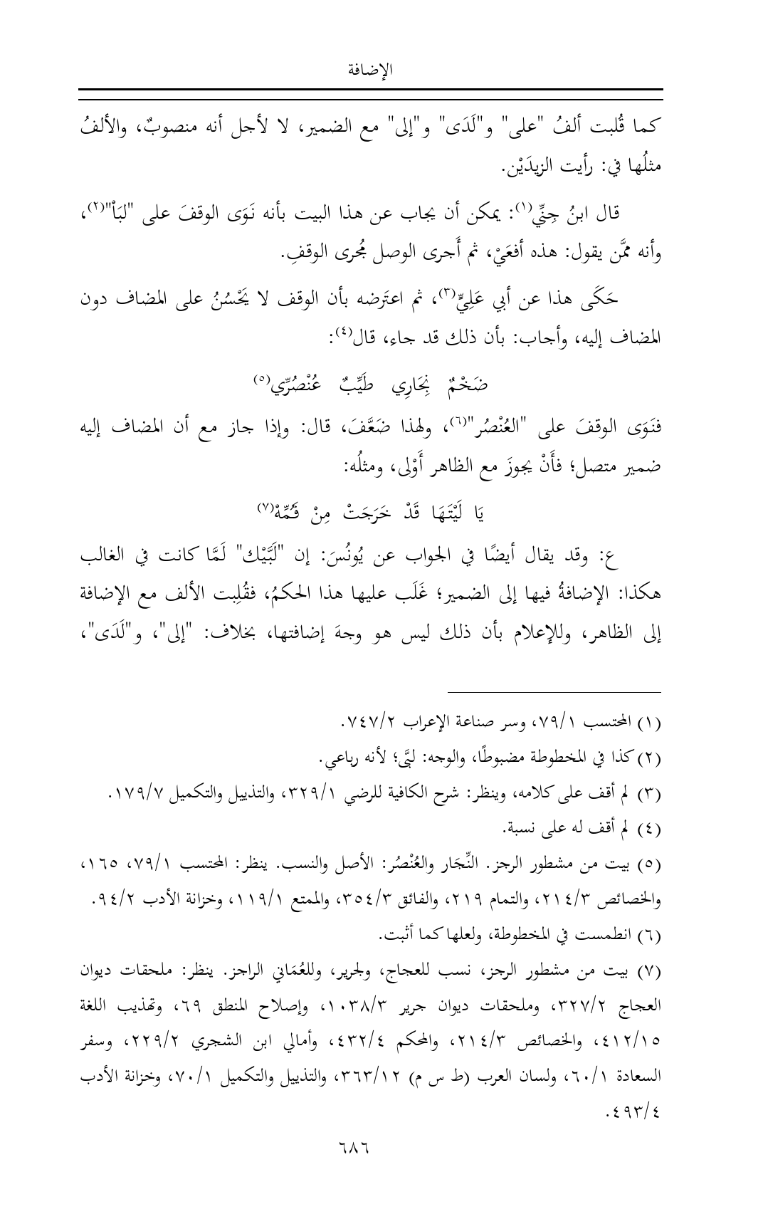 فنَوَى الوقفَ على "العُنْصُر" (¬٦)، ولهذا ضَعَّفَ، قال: وإذا جاز مع أن المضاف إليه ضمير متصل؛ فأَنْ يجوزَ مع الظاهر أَوْلى، ومثلُه: