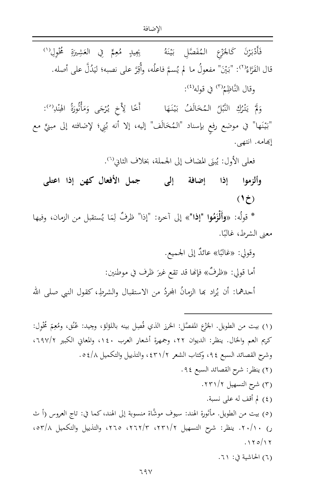 وألزموا إذا إضافة إلى ... جمل الأفعال كهن إذا اعتلى