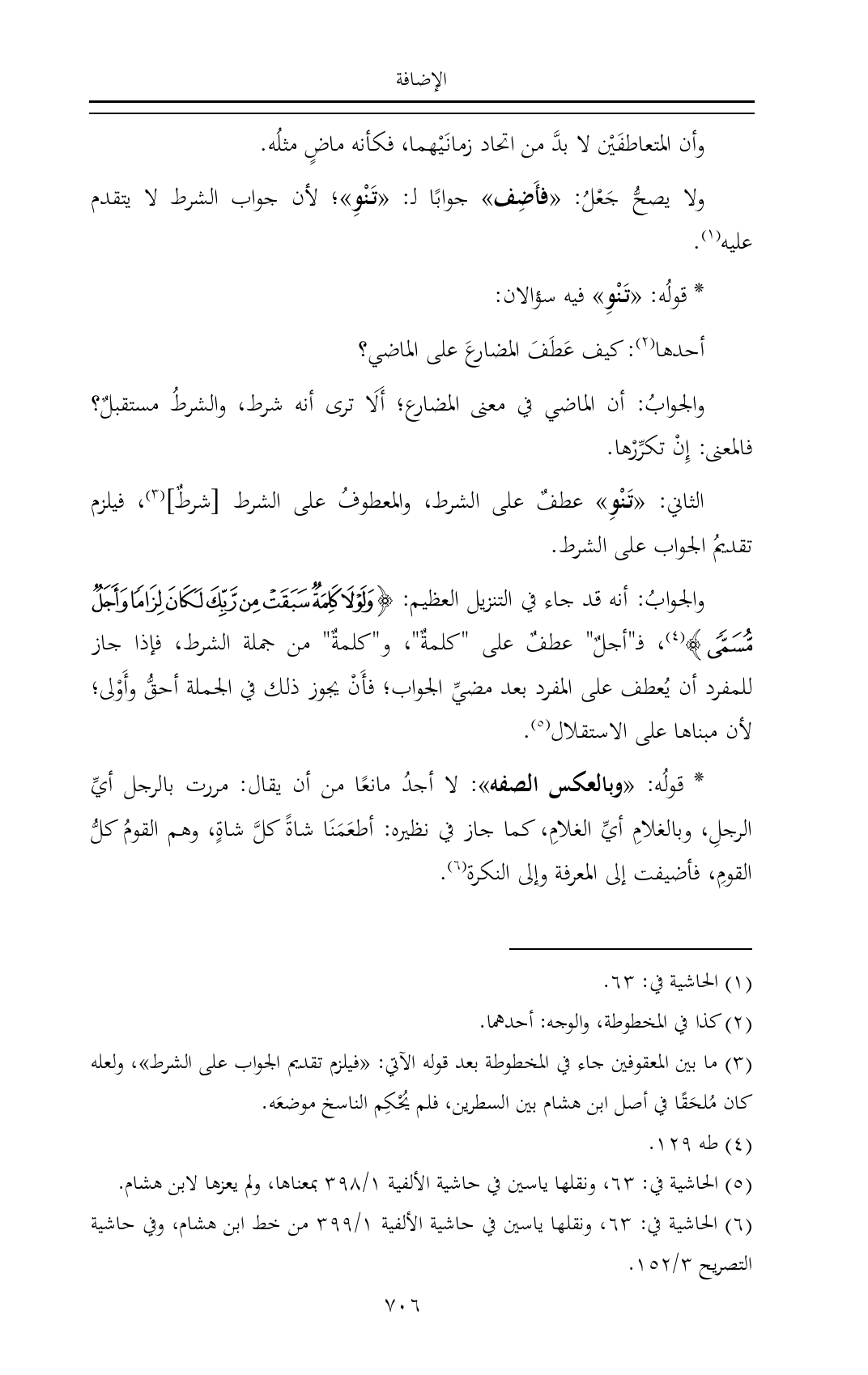 (¬٦) الحاشية في: ٦٣، ونقلها ياسين في حاشية الألفية ١/ ٣٩٩ من خط ابن هشام، وفي حاشية التصريح ٣/ ١٥٢.