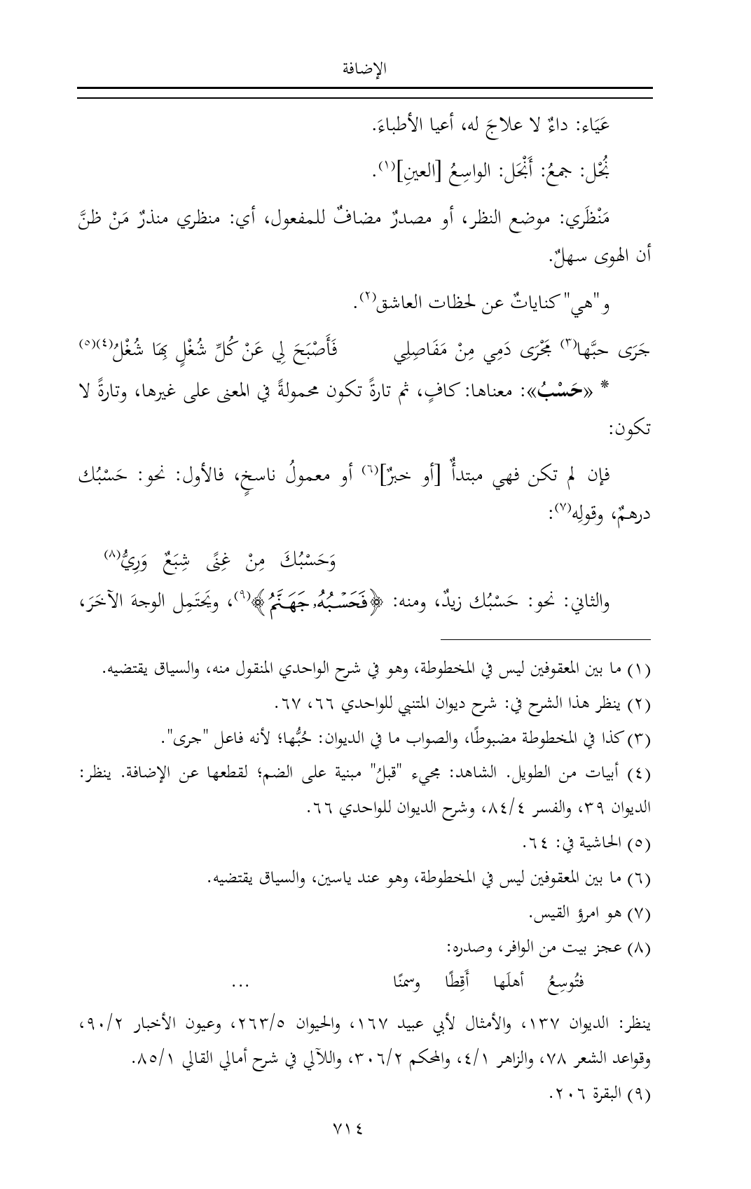 (¬٢) ينظر هذا الشرح في: شرح ديوان المتنبي للواحدي ٦٦، ٦٧.