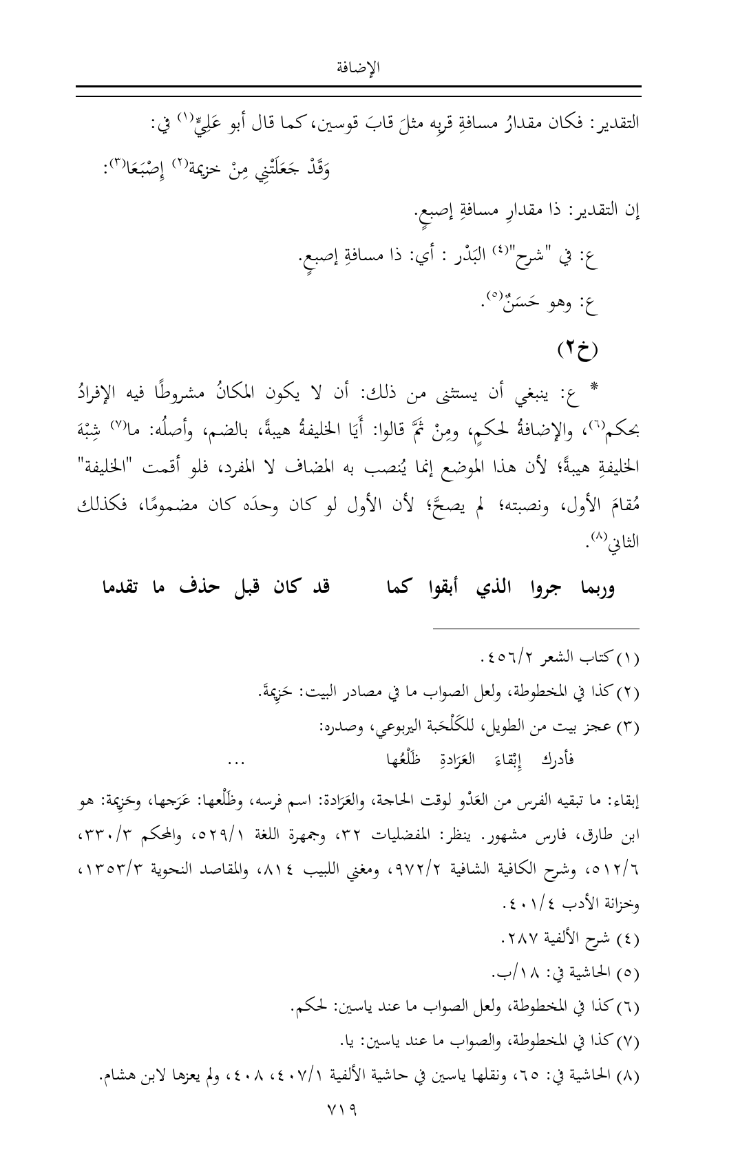 (¬٨) الحاشية في: ٦٥، ونقلها ياسين في حاشية الألفية ١/ ٤٠٧، ٤٠٨، ولم يعزها لابن هشام.