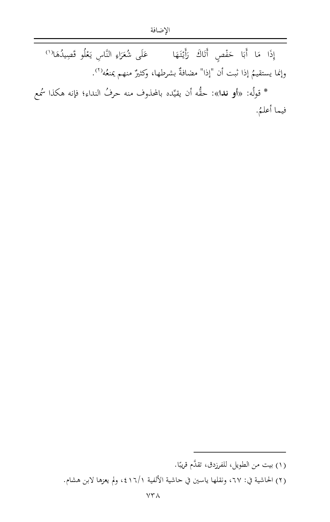 (¬٢) الحاشية في: ٦٧، ونقلها ياسين في حاشية الألفية ١/ ٤١٦، ولم يعزها لابن هشام.