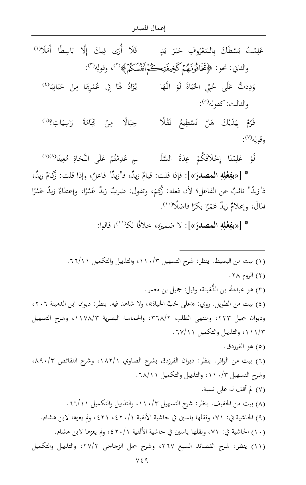 (¬١١) ينظر: شرح القصائد السبع ٢٦٧، وشرح جمل الزجاجي ٢/ ٢٧، والتذييل والتكميل ١١/ ٥٦.