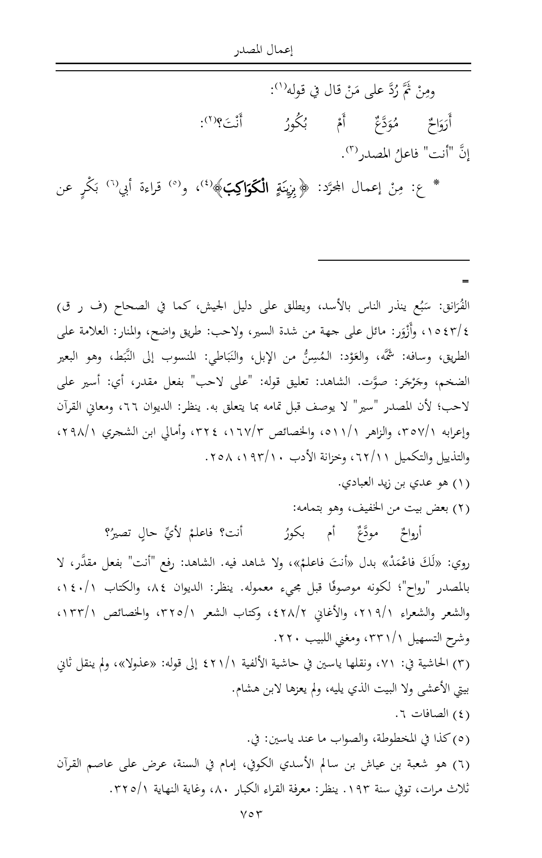 * ع: مِنْ إعمال المجرَّد: {بِزِينَةٍ الْكَوَاكِبَ} (¬٤)، و (¬٥) قراءة أبي (¬٦) بَكْرٍ عن