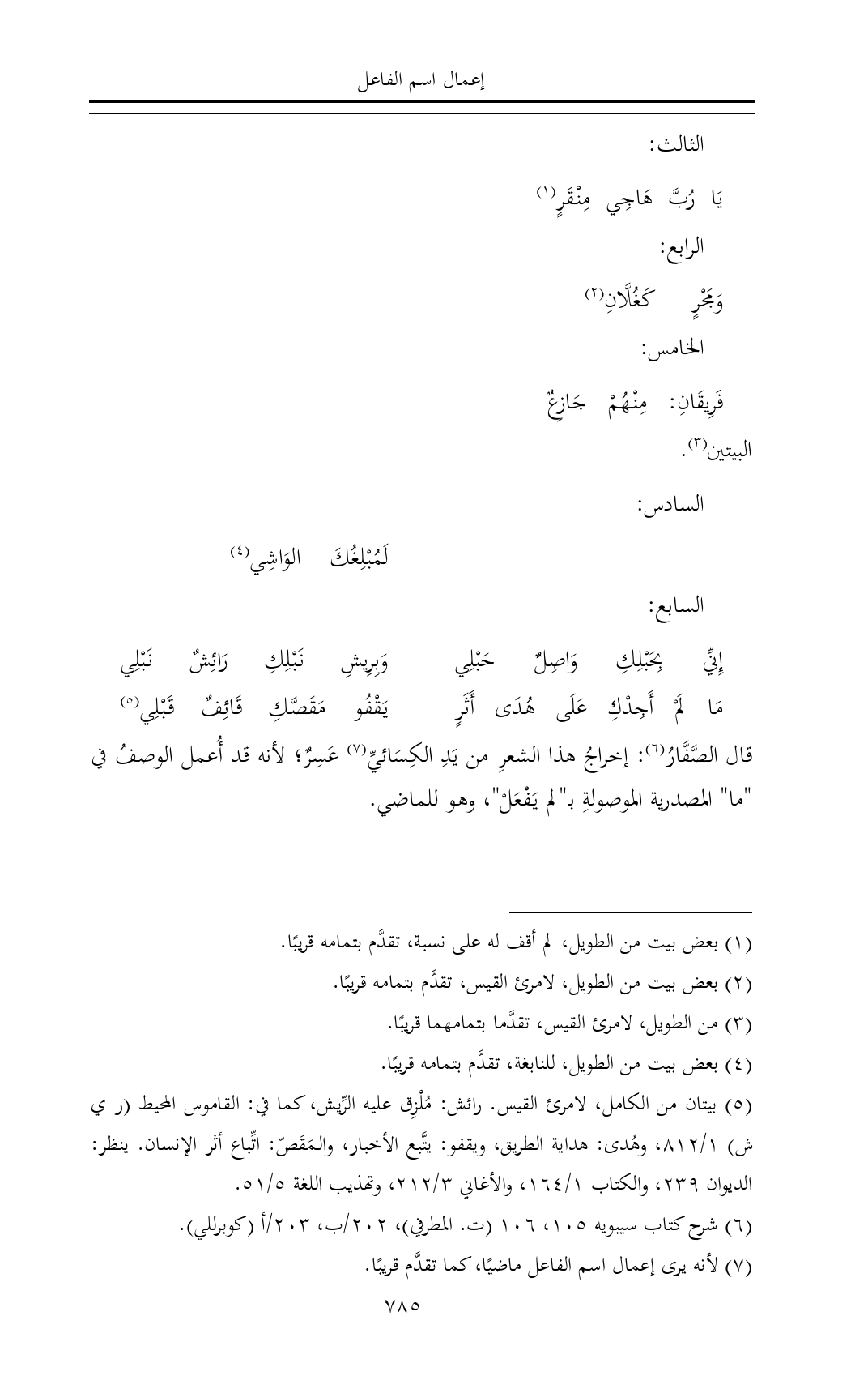 (¬٧) لأنه يرى إعمال اسم الفاعل ماضيًا، كما تقدَّم قريبًا.