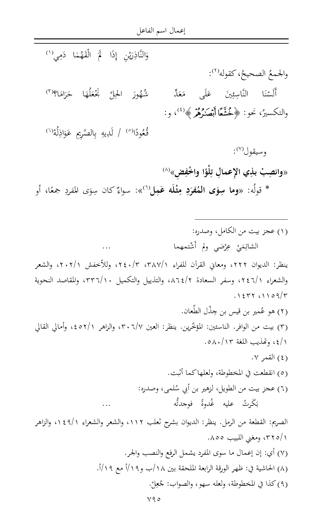 «وانصِبْ بذِي الإِعمالِ تِلْوًا واخْفِضِ» (¬٨)