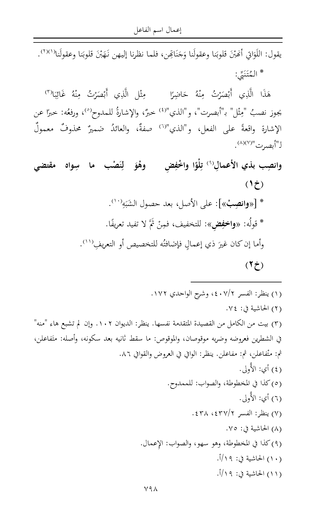 (¬٩) كذا في المخطوطة، وهو سهو، والصواب: الإِعمال.