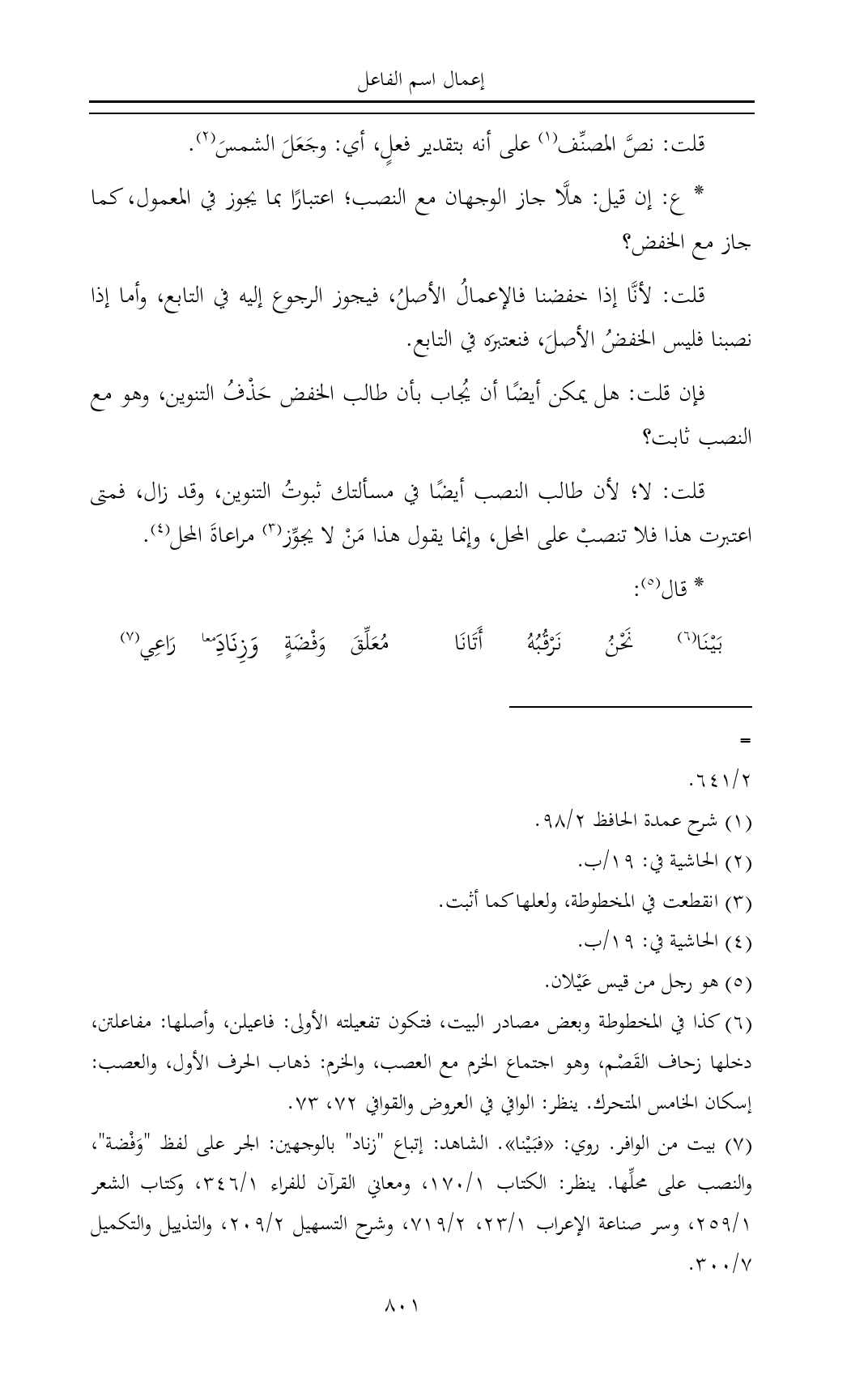 (¬٧) بيت من الوافر. روي: «فبَيْنا». الشاهد: إتباع "زناد" بالوجهين: الجر على لفظ "وَفْضة"، والنصب على محلِّها. ينظر: الكتاب ١/ ١٧٠، ومعاني القرآن للفراء ١/ ٣٤٦، وكتاب الشعر ١/ ٢٥٩، وسر صناعة الإعراب ١/ ٢٣، ٢/ ٧١٩، وشرح التسهيل ٢/ ٢٠٩، والتذييل والتكميل ٧/ ٣٠٠.