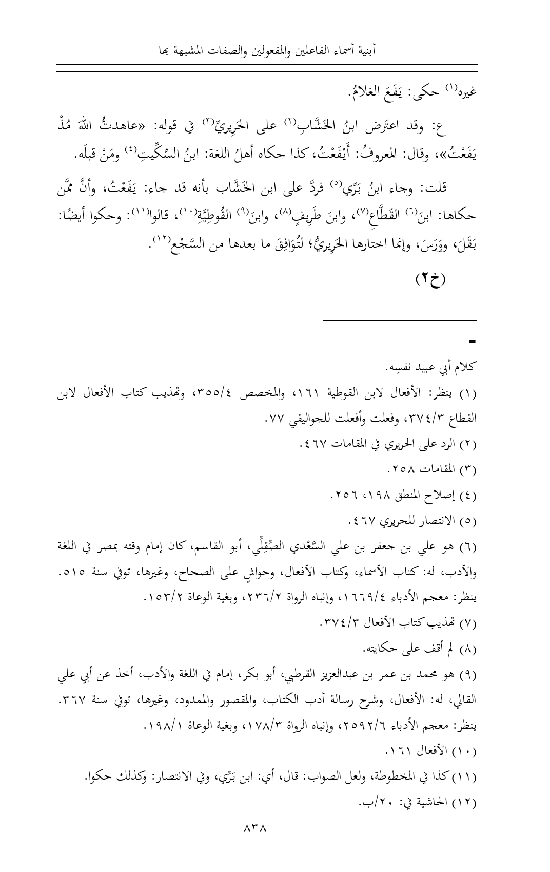 (¬١١) كذا في المخطوطة، ولعل الصواب: قال، أي: ابن بَرِّي، وفي الانتصار: وكذلك حكوا.