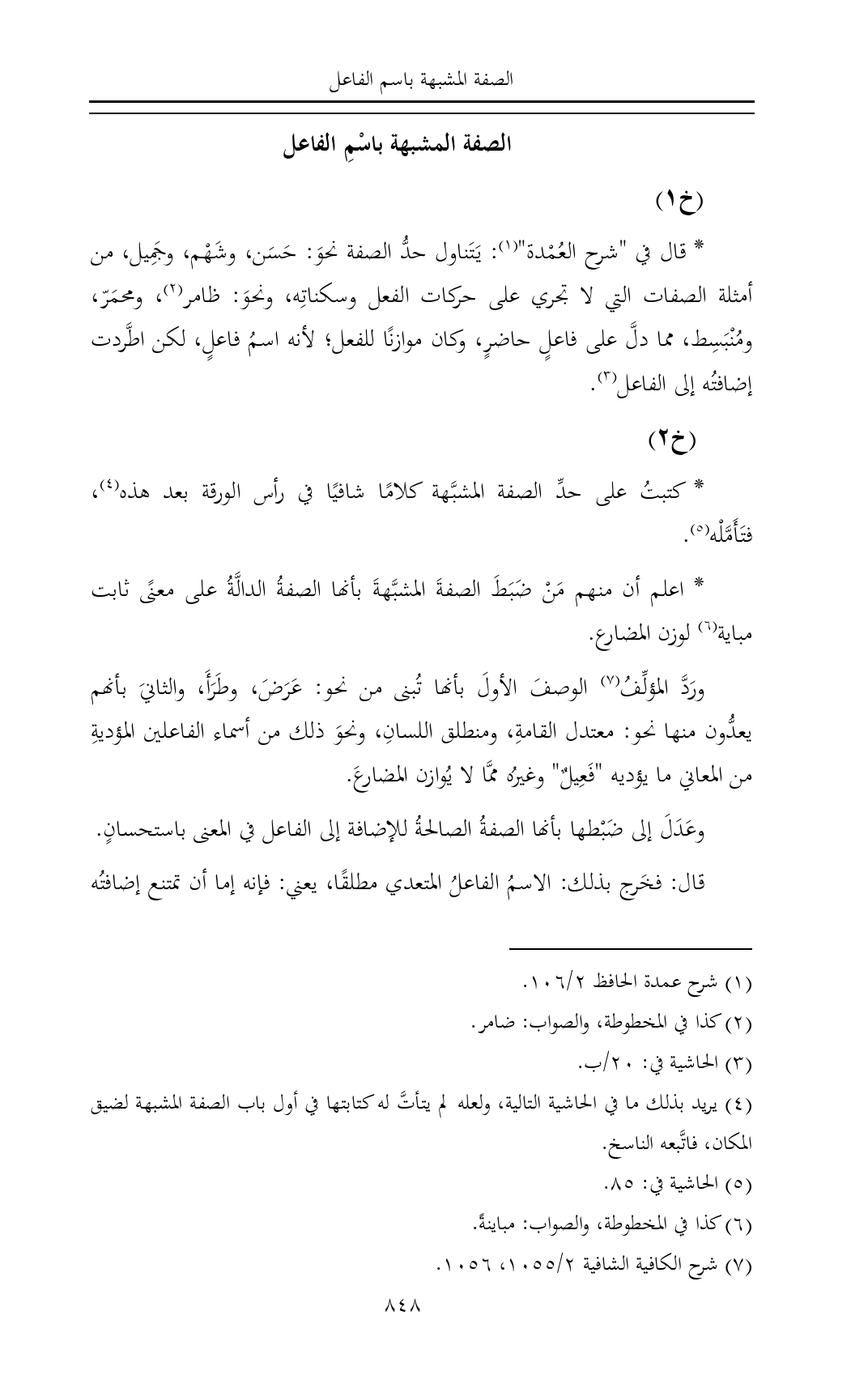(¬٤) يريد بذلك ما في الحاشية التالية، ولعله لم يتأتَّ له كتابتها في أول باب الصفة المشبهة لضيق المكان، فاتَّبعه الناسخ.