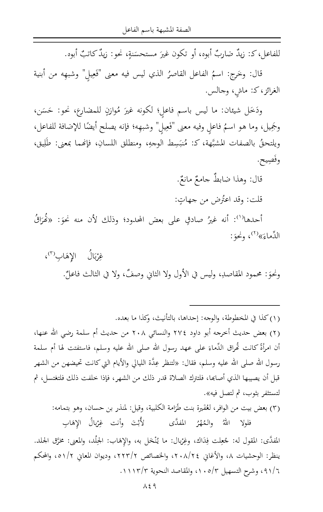 أحدها (¬١): أنه غيرُ صادقٍ على بعض المحدود؛ وذلك لأن منه نحوَ: «تُهرَاقُ الدِّماءَ» (¬٢)، ونحوَ: