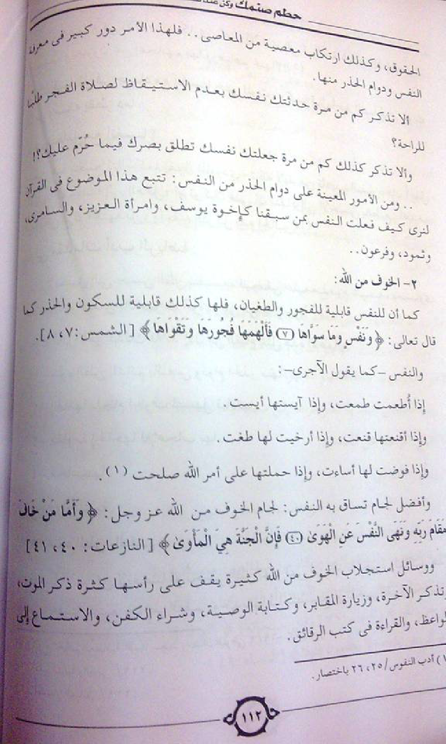 كما أن للنفس قابلية للفجور والطغيان، فلها كذلك قابلية للسكون والحذر كما قال تعالى: {وَنَفْسٍ وَمَا سَوَّاهَا * فَأَلْهَمَهَا فُجُورَهَا وَتَقْوَاهَا} [الشمس: 7، 8].