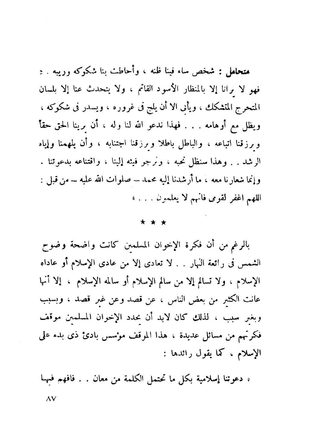 «دعوتنا إسلامية بكل ما تحتمل الكلمة من معان ... فافهم فيها