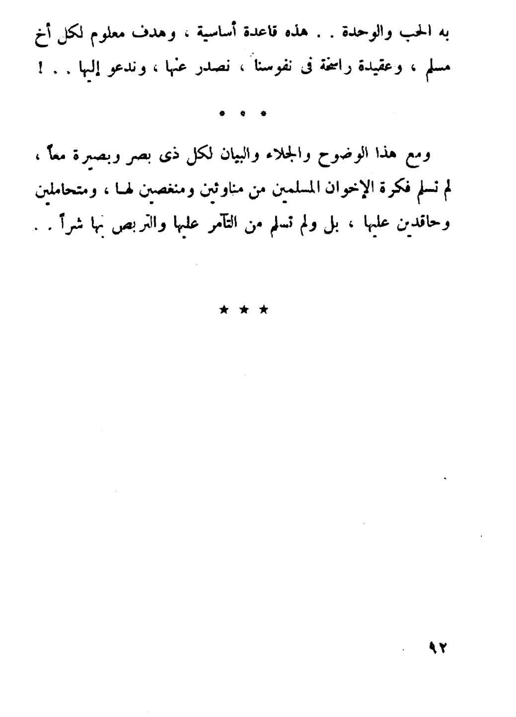 به الحب والوحدة .. هذه قاعدة أساسية، وهدف معلوم لكل أخ مسلم , وعقيدة راسخة في نفوسنا , نصدر عنها , وندعوا إليها .. !