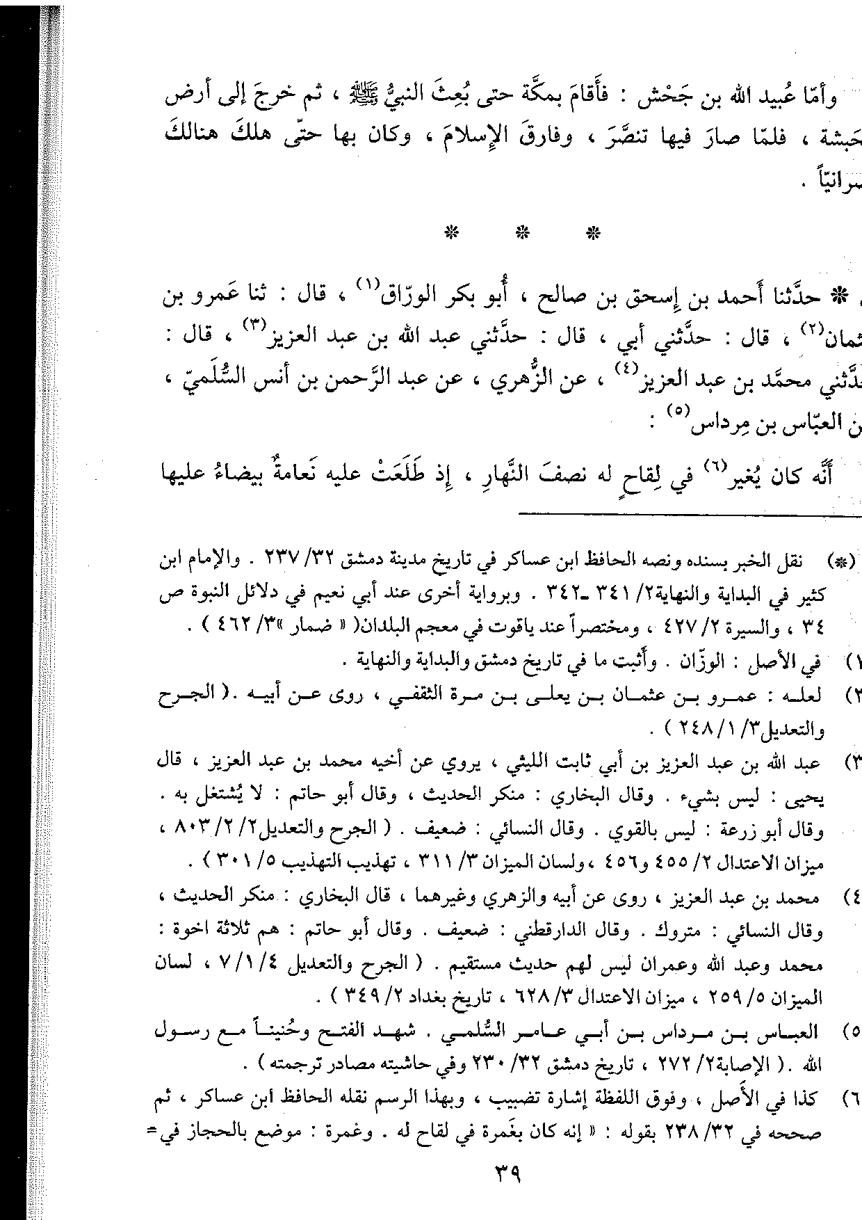 حدثنا أحمد بن إسحاق بن صالح، أبو بكر الوّراق، قال: ثنا عمرو بن عثمان، قال: حدثني أبي، قال: حدثني عبد الله بن عبد العزيز، قال: حدثني محمد بن عبد العزيز، عن الزُّهري، عن عبد الرحمن بن أنس السُّلمي، عن العباس بن مرداس.