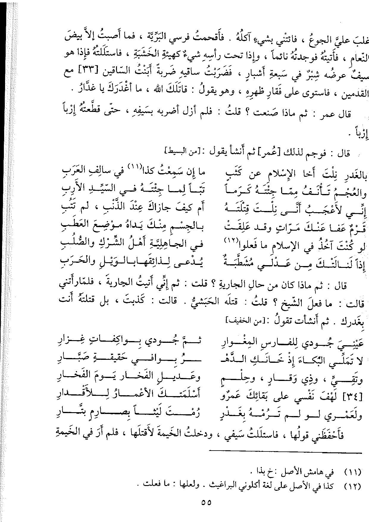 قال: فوجم لذلك "عمر" ثم أنشأ يقول "من البسيط":