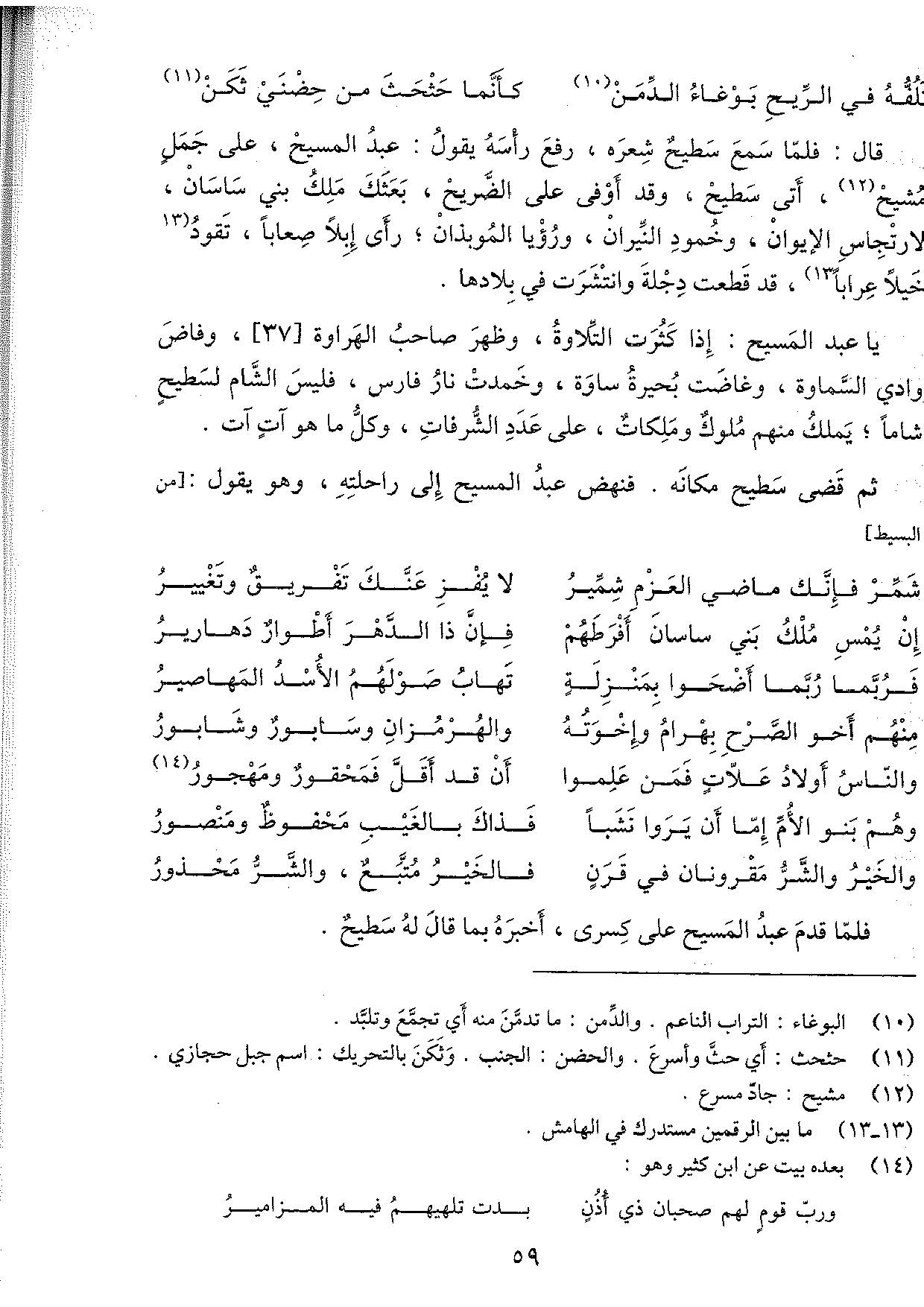 ثم قضى سُطيح مكانه. فنهض عبد المسيح إلى راحلته وهو يقول "من البسيط":