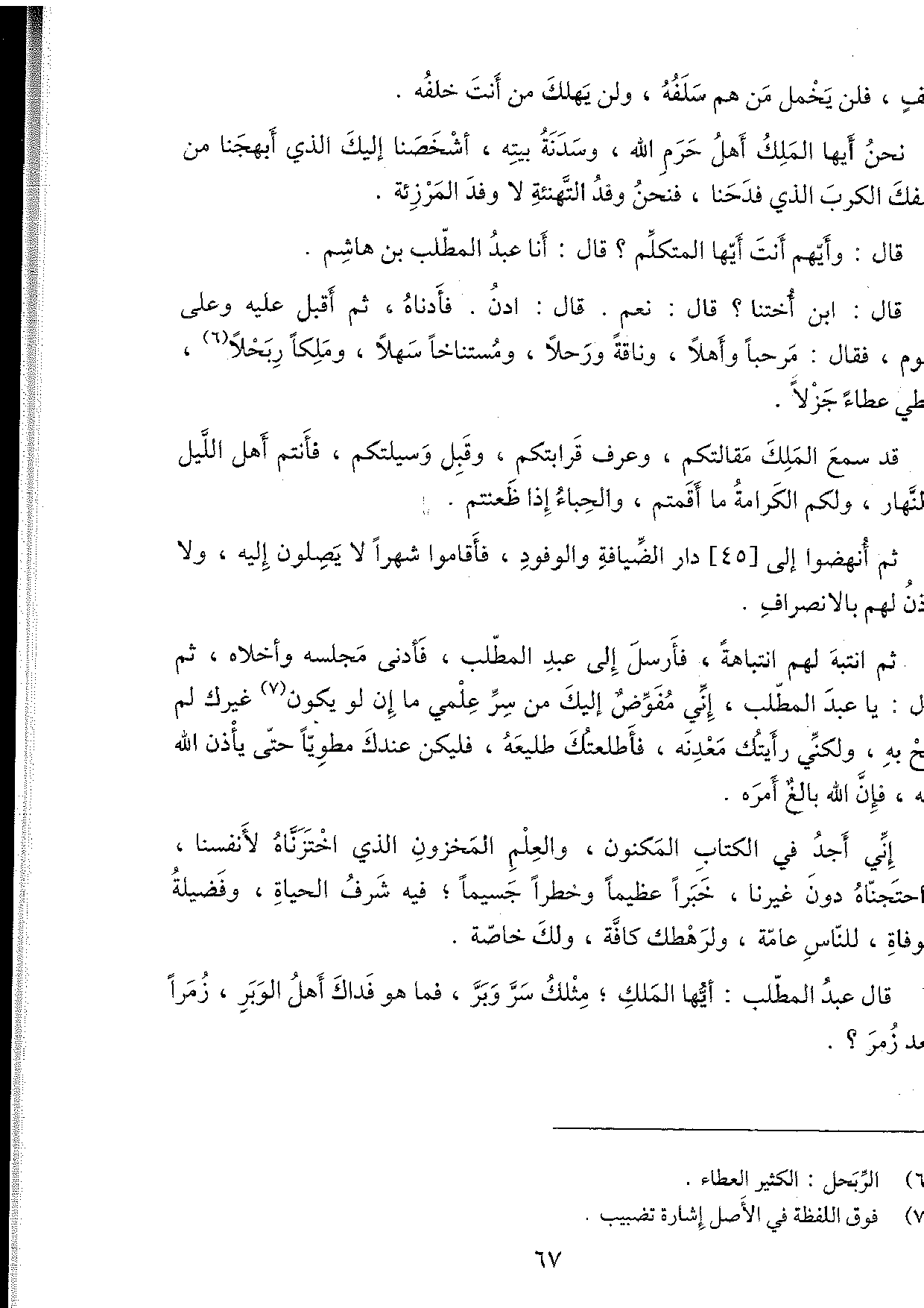 قال: وأيَّهم أنت أيّها المتكلم؟ قال: أنا عبد المطّلب بن هاشم.