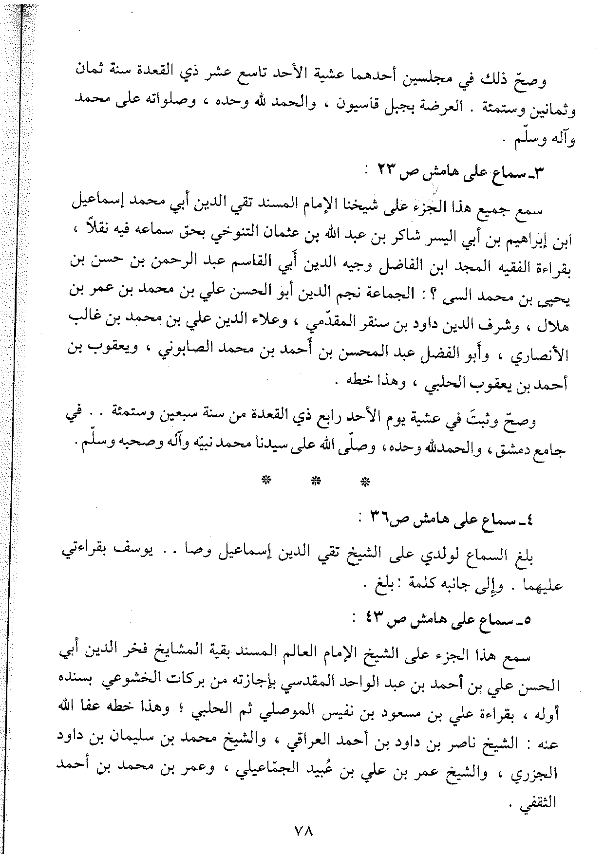 وصحّ ذلك في مجلسين أحدهما عشية الأحد تاسع عشر ذي القعدة سنة ثمان وثمانين وستمئة. العرض بحبل قاسيون، والحمد لله وحده وصلواته على محمد وآله وسلّم.