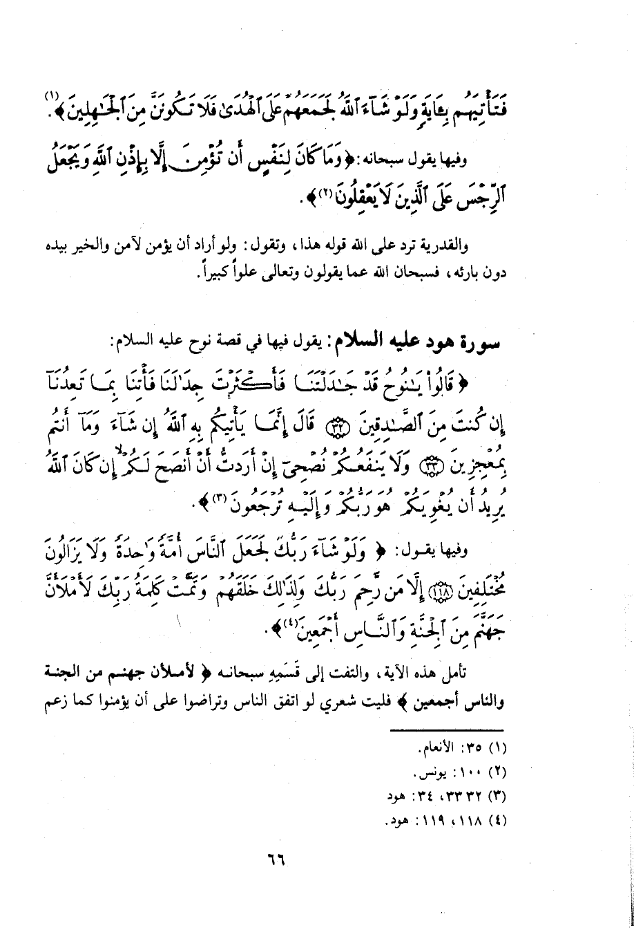 وفيهَا يَقُول {وَلَو شَاءَ رَبك لجعل النَّاس أمة وَاحِدَة وَلَا يزالون مُخْتَلفين إِلَّا من رحم رَبك وَلذَلِك خلقهمْ وتمت كلمة رَبك لأملأن جَهَنَّم من الْجنَّة وَالنَّاس أَجْمَعِينَ}