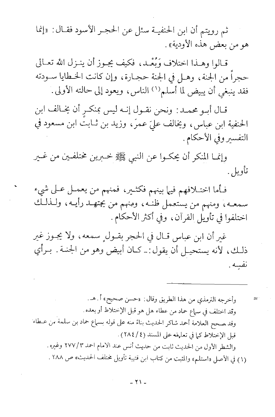 فأول الحديث وآخره يبين أن الحجر الأسود ليس من صفات الله كما هو معلوم عند كل عاقل، ولكن بين أن الله كما جعل للناس بيتاً يطوفون به، جعل لهم ما يستلمونه، ليكون ذلك بمنزلة تقبيل يد العظماء، فإن ذلك تقريب للمقبّل، وتكريم له، كما جرت العادة.