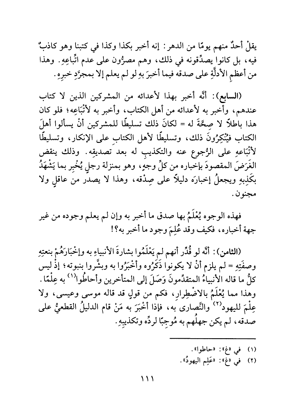 يقلْ أحدٌ منهم يومًا من الدهر: إنه أخبر بكذا وكذا في كتبنا وهو كاذبٌ فيه، بل كانوا يصدِّقونه في ذلك، وهم مصرُّون على عدم اتِّباعِهِ. وهذا من أعظمِ الأدلَّةِ على صدقه فيما أخبرَ بهِ لو لم يعلم إلا بمجرَّدِ خبرِهِ.