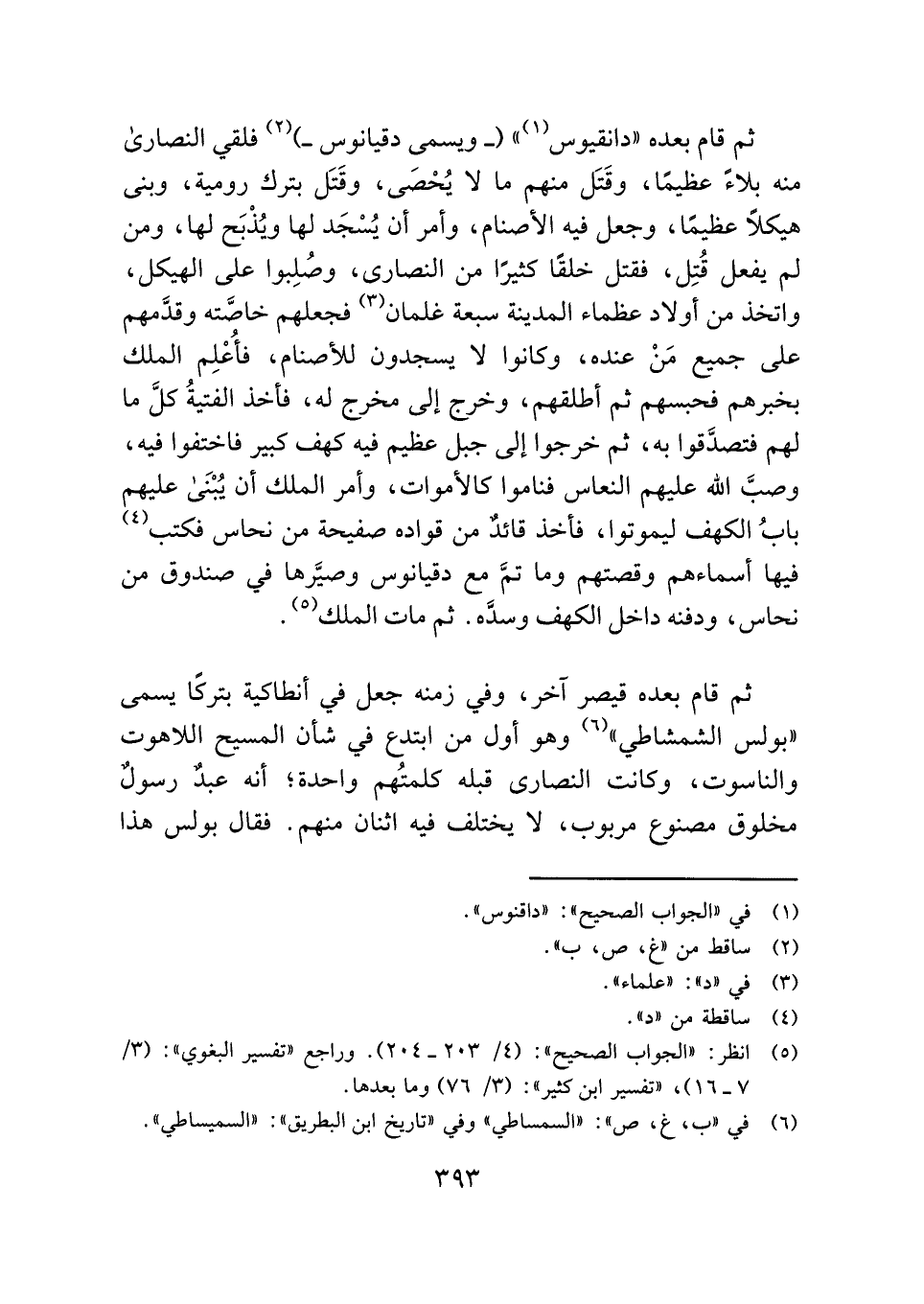 (¬٥) انظر: "الجواب الصحيح": (٤/ ٢٠٣ - ٢٠٤). وراجع "تفسير البغوي": (٣/ ٧ - ١٦)، "تفسير ابن كثير": (٣/ ٧٦) وما بعدها.