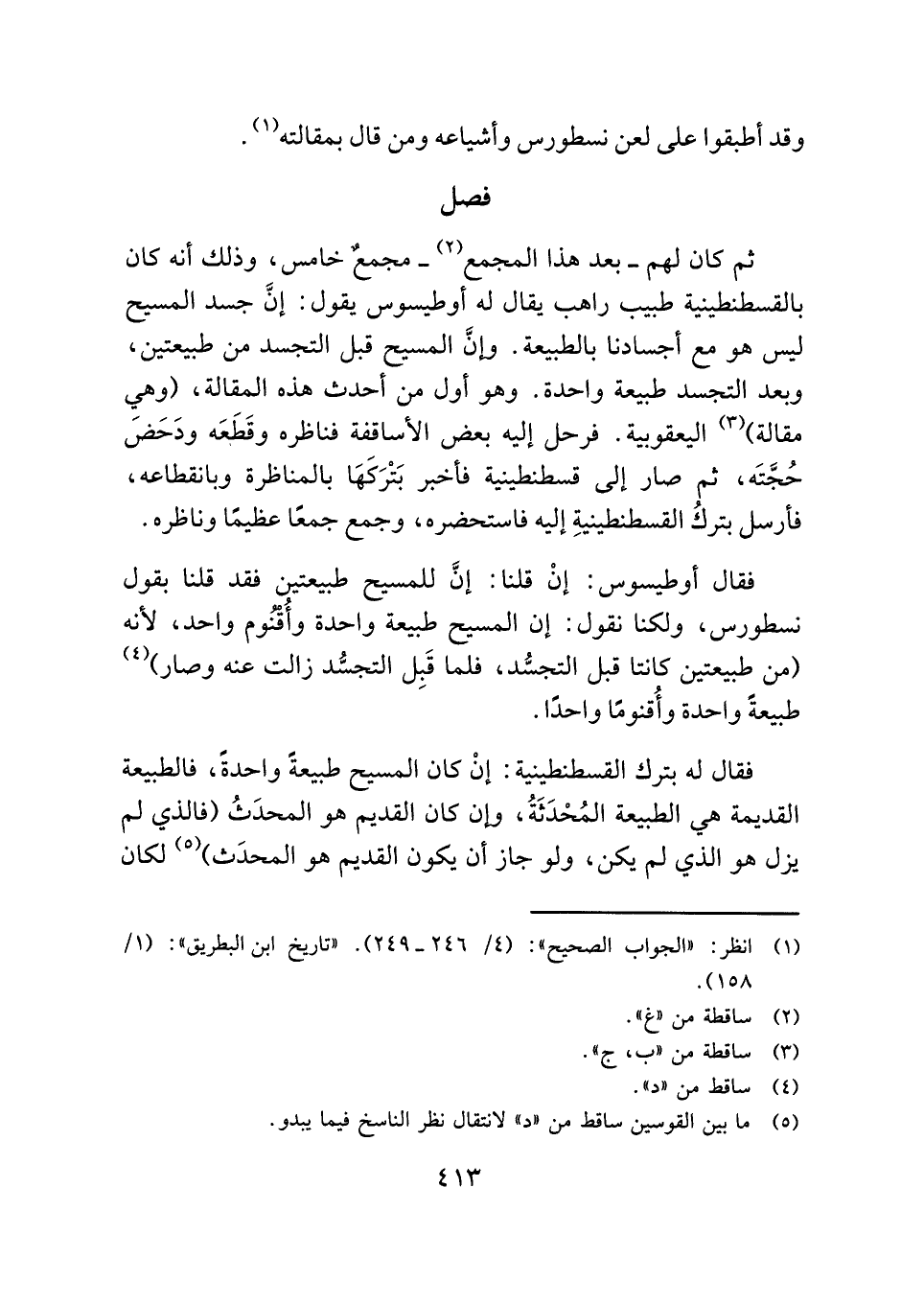 (¬١) انظر: "الجواب الصحيح": (٤/ ٢٤٦ - ٢٤٩). "تاريخ ابن البطريق": (١/ ١٥٨).