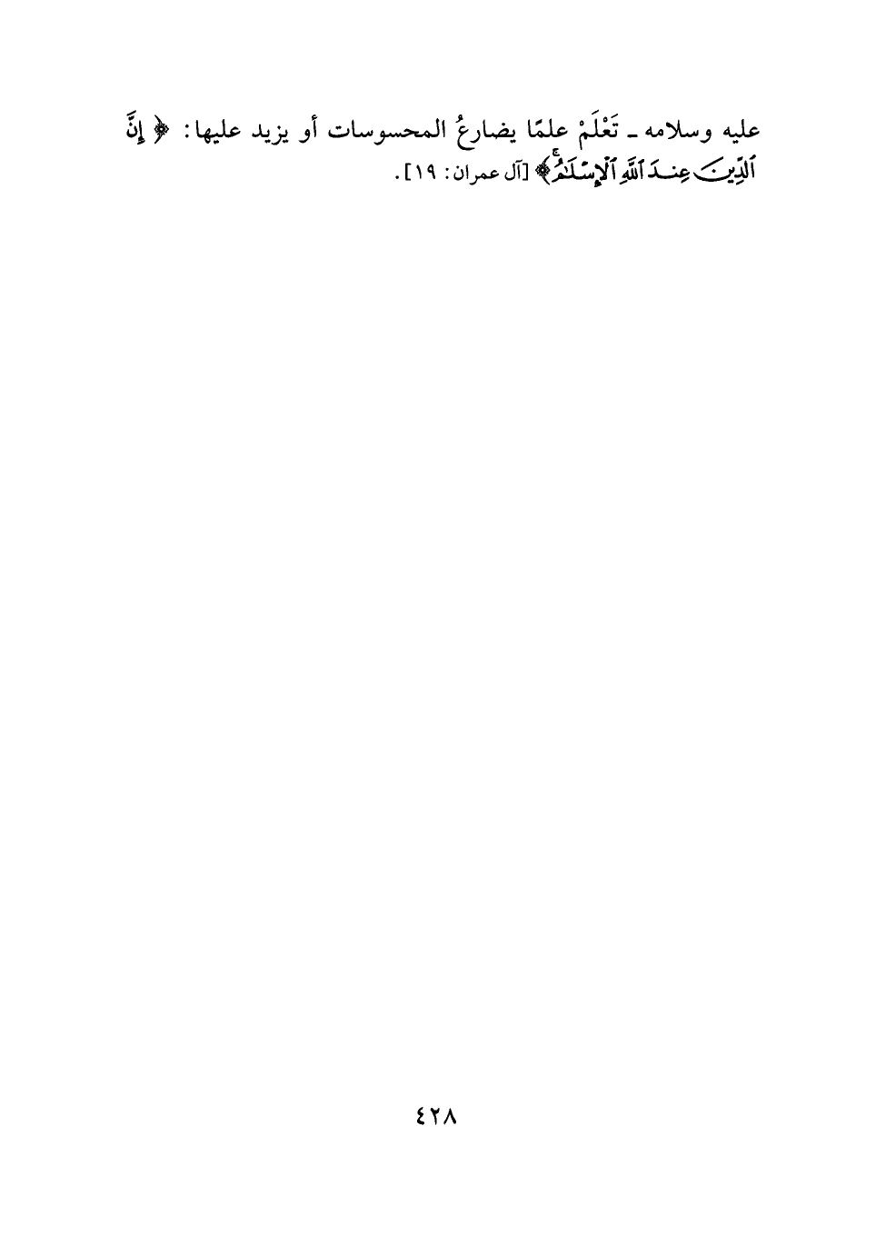 عليه وسلامه- تَعْلَمْ علمًا يضارعُ المحسوسات أو يزيد عليها: {إِنَّ الدِّينَ عِنْدَ اللَّهِ الْإِسْلَامُ} [آل عمران: ١٩].