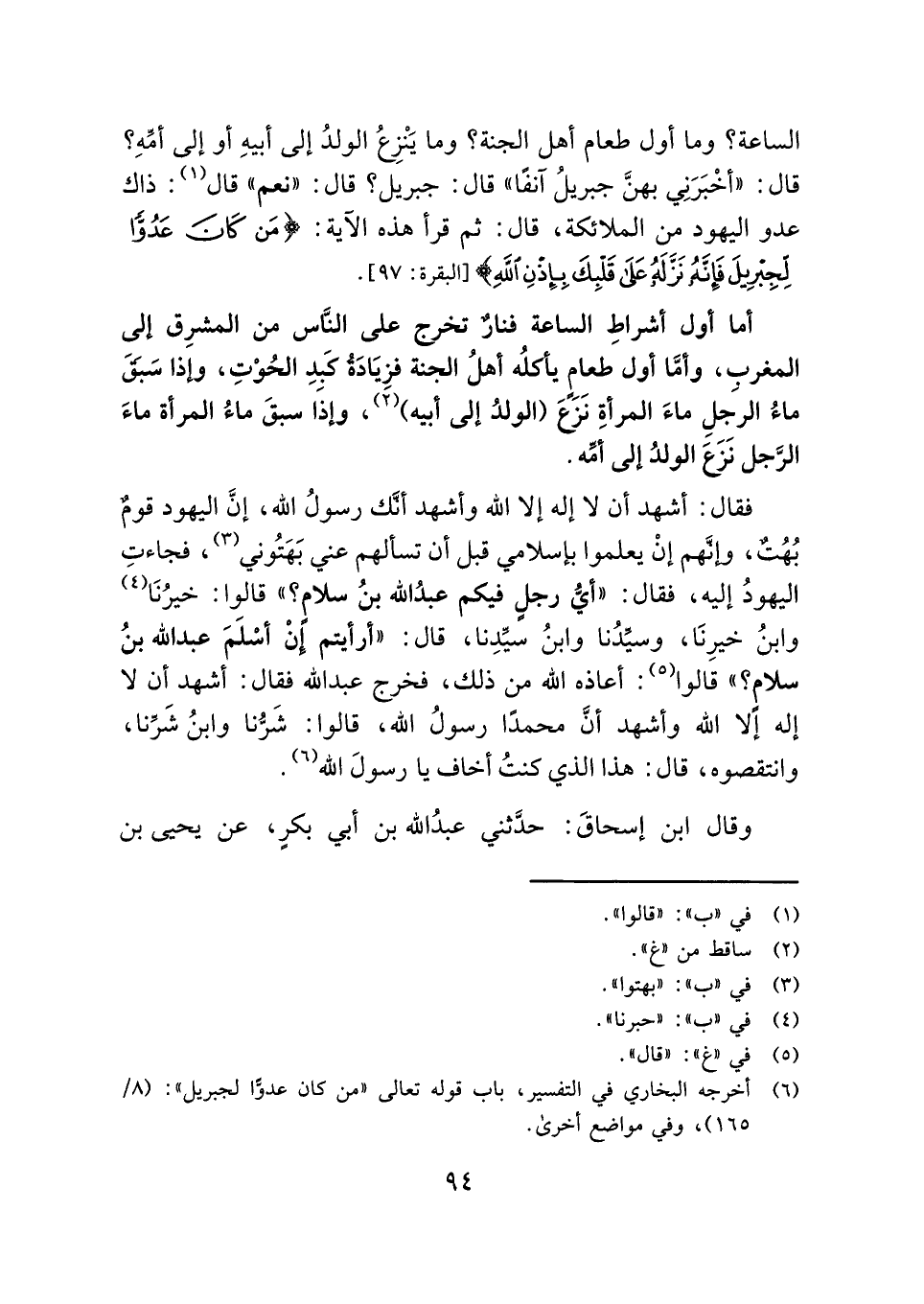(¬٦) أخرجه البخاري في التفسير، باب قوله تعالى "من كان عدوًّا لجبريل": (٨/ ١٦٥)، وفي مواضع أخرى.