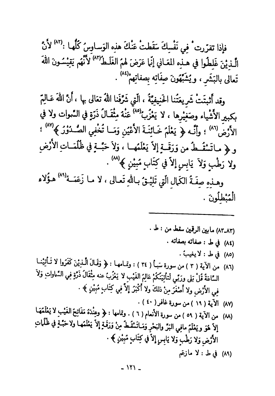 فَإِذا تقررت فِي نَفسك سَقَطت عَنْك هَذِه الوساوس كلهَا لِأَن الَّذين غلطوا فِي هَذِه الْمعَانِي إِنَّمَا عرض لَهُم الْغَلَط لأَنهم يقيسون الله تَعَالَى بالبشر ويشبهون صِفَاته بصفاتهم