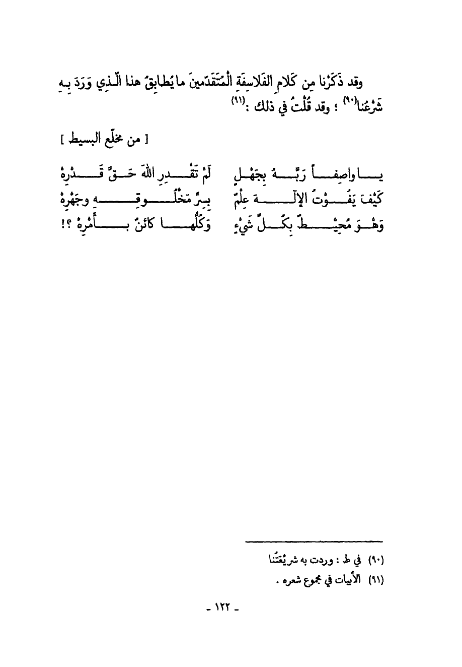 (يَا واصفا ربه بِجَهْل ... لم تقدر الله حق قدره) // من مخلع الْبَسِيط //