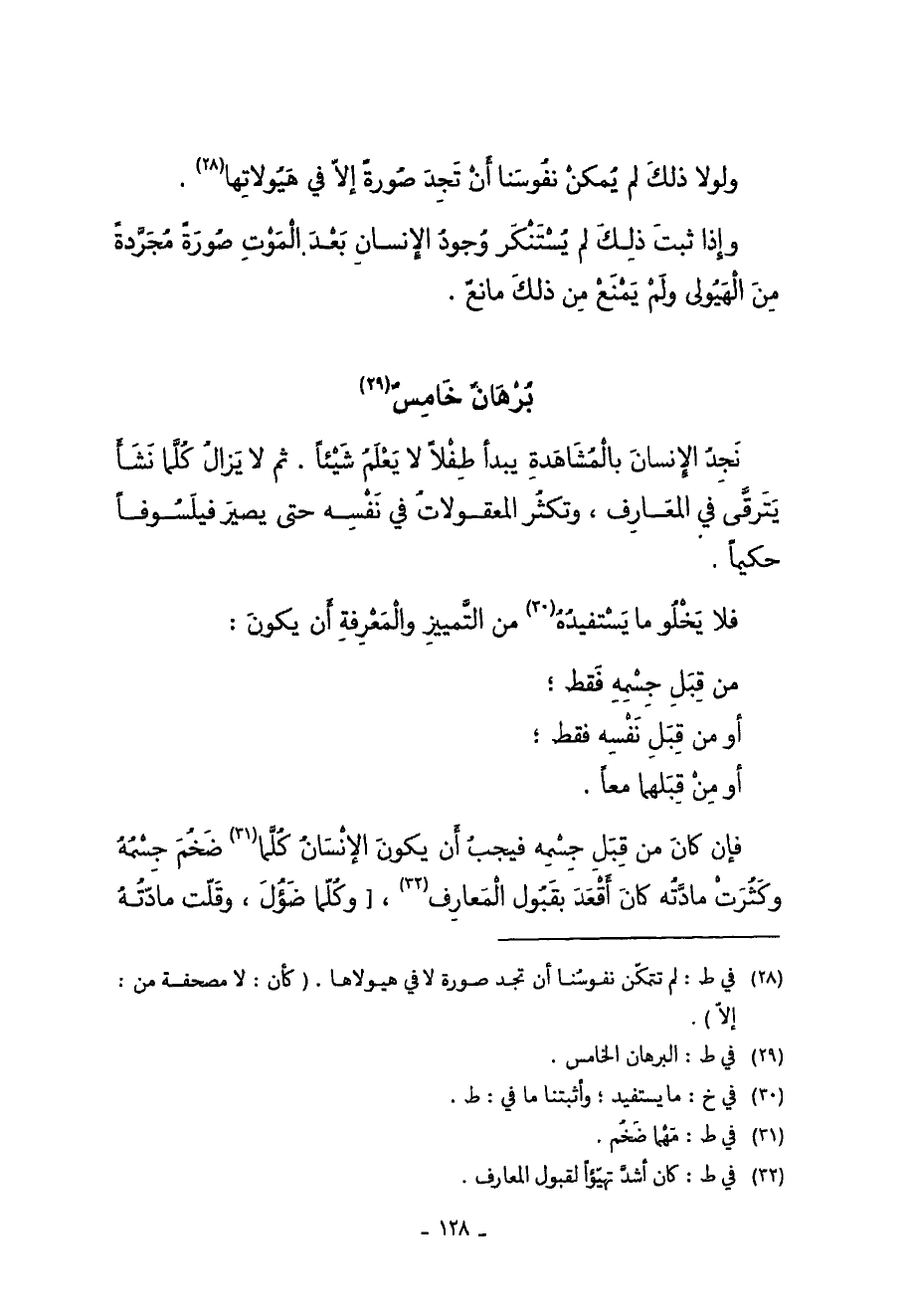 نجد الْإِنْسَان بِالْمُشَاهَدَةِ يبْدَأ طفْلا لَا يعلم شَيْئا ثمَّ لَا يزَال كلما نَشأ يترقى فِي المعارف وتكثر المعقولات فِي نَفسه حَتَّى يصير فيلسوفا حكيما