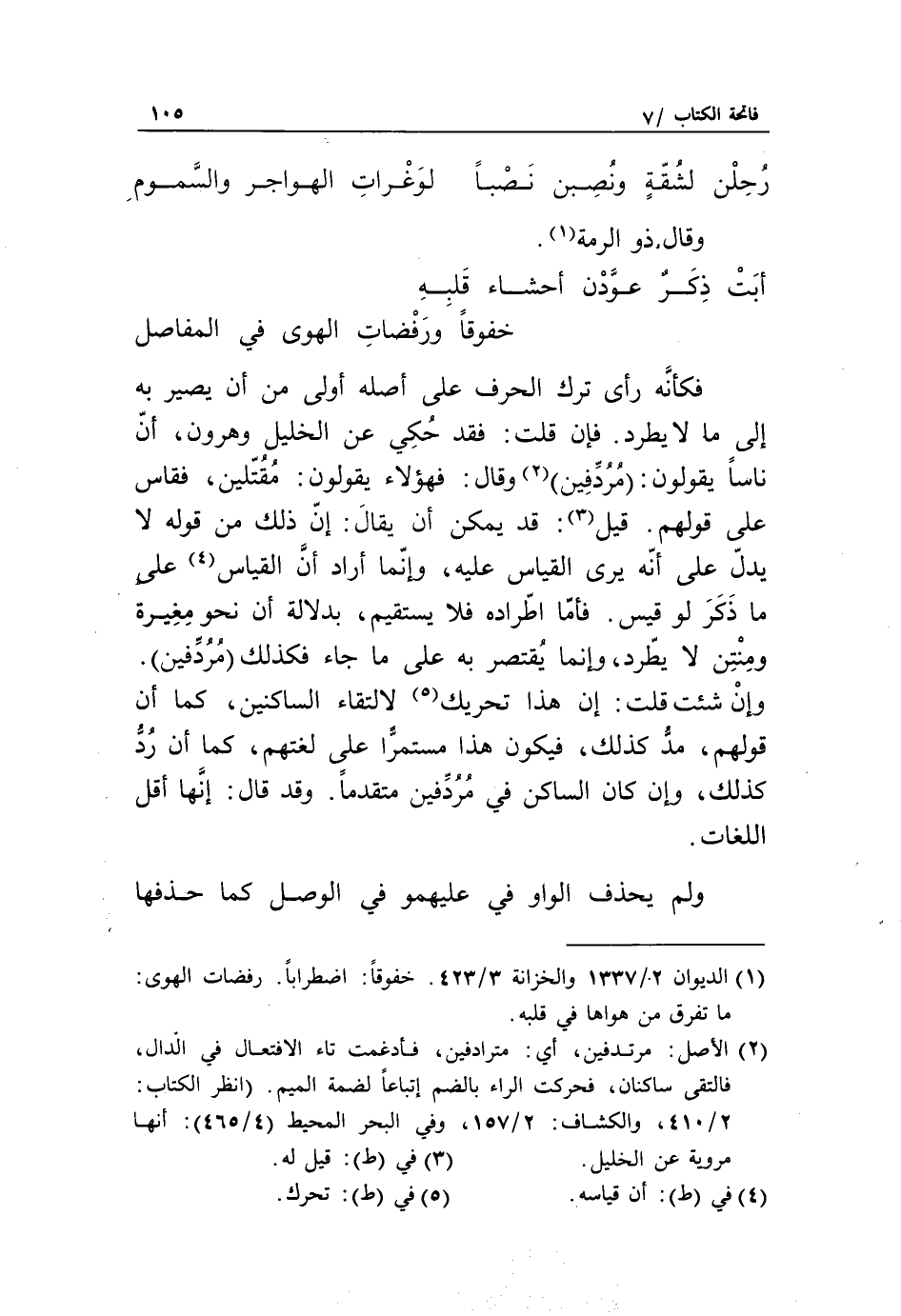 (2) الأصل: مرتدفين، أي: مترادفين، فأدغمت تاء الافتعال في الدال، فالتقى ساكنان، فحركت الراء بالضم اتباعا لضمة الميم. (انظر الكتاب: