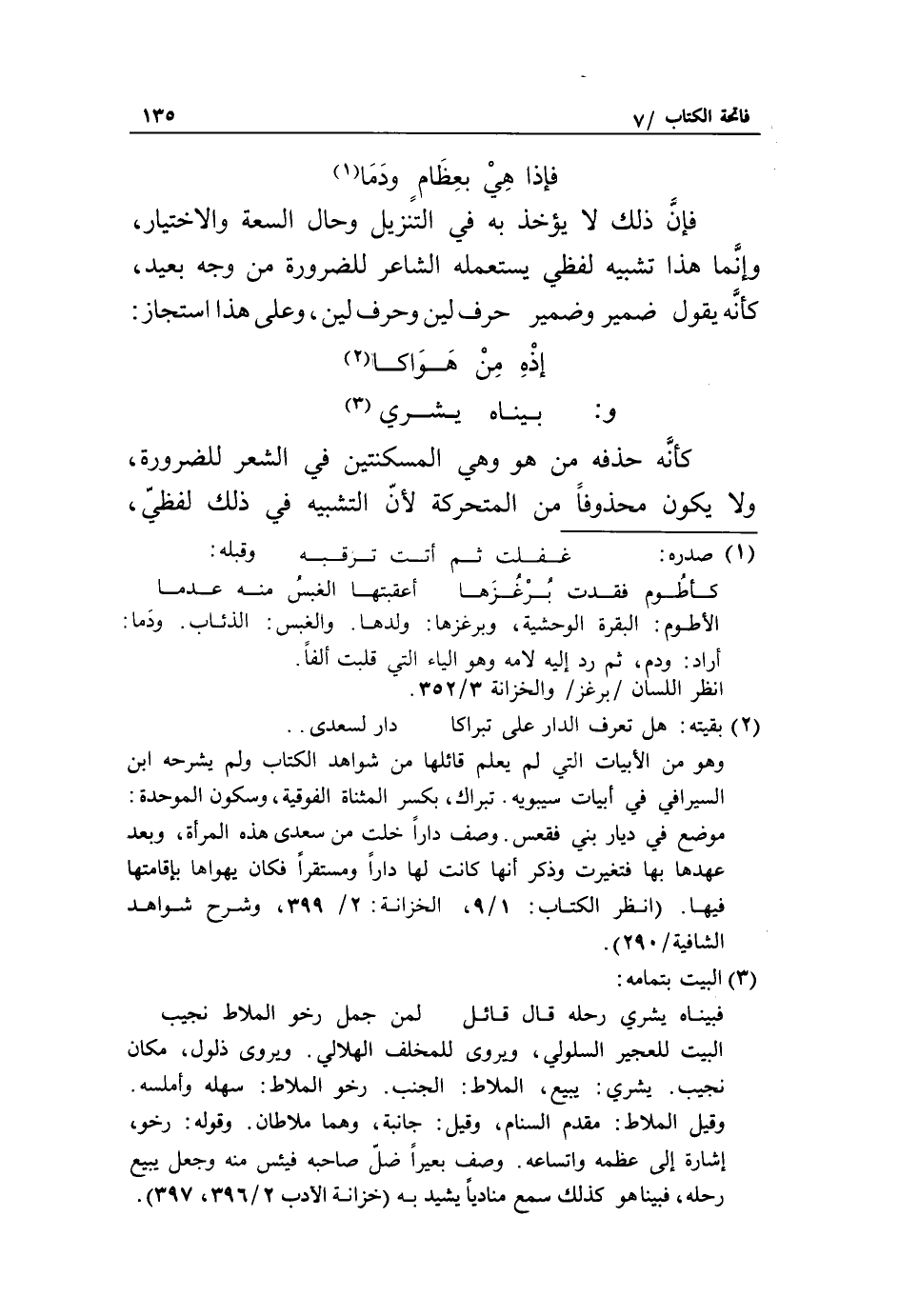 فإذا هي بعظام ودما «1» فإنّ ذلك لا يؤخذ به في التنزيل وحال السعة والاختيار، وإنّما هذا تشبيه لفظي يستعمله الشاعر للضرورة من وجه بعيد، كأنّه يقول ضمير وضمير حرف لين وحرف لين، وعلى هذا استجاز:
